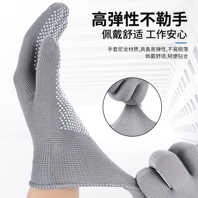 尼龙点胶防滑耐磨劳保手套点珠司机开车搬运薄款涂胶工作男女干活
