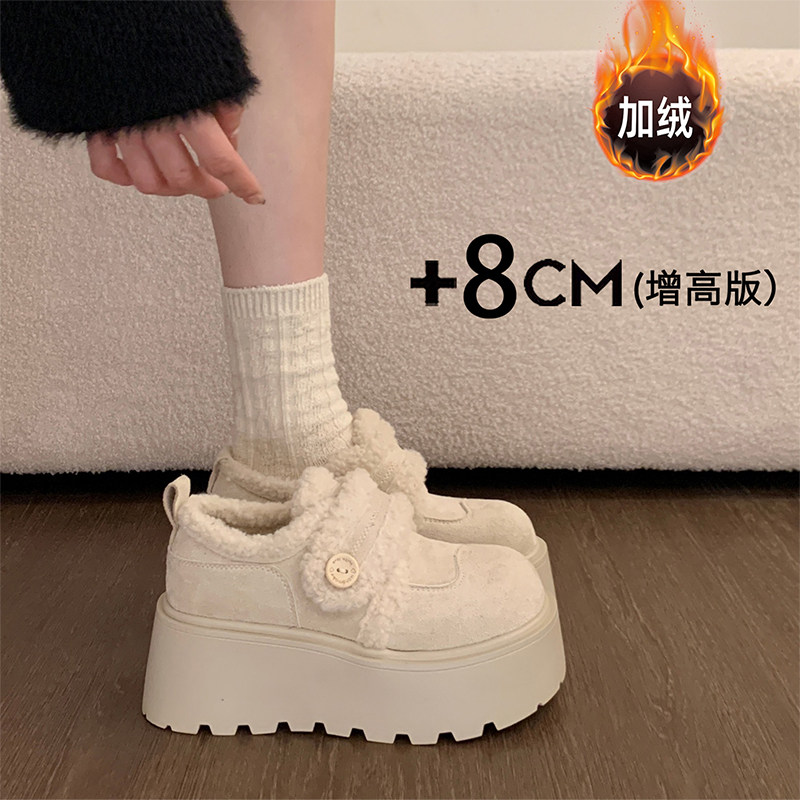 miu家厚底雪地靴女冬季真皮短靴羊毛侧拉链增高厚底加绒毛毛棉鞋