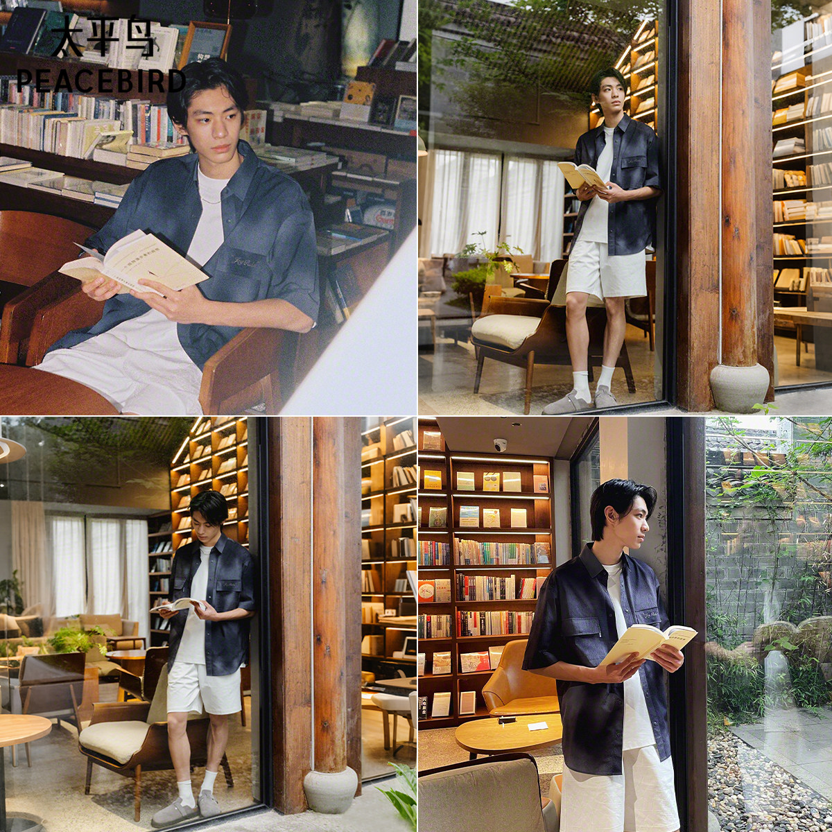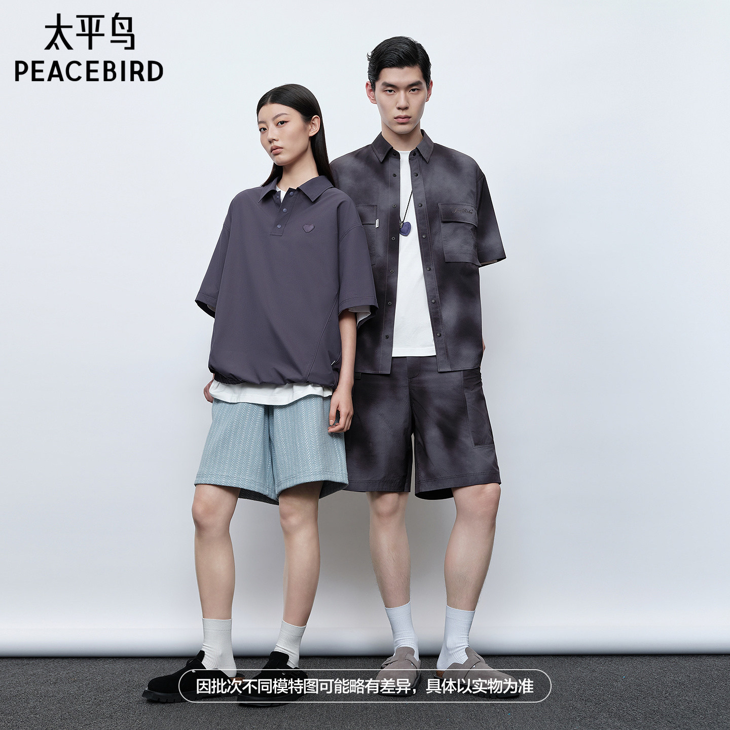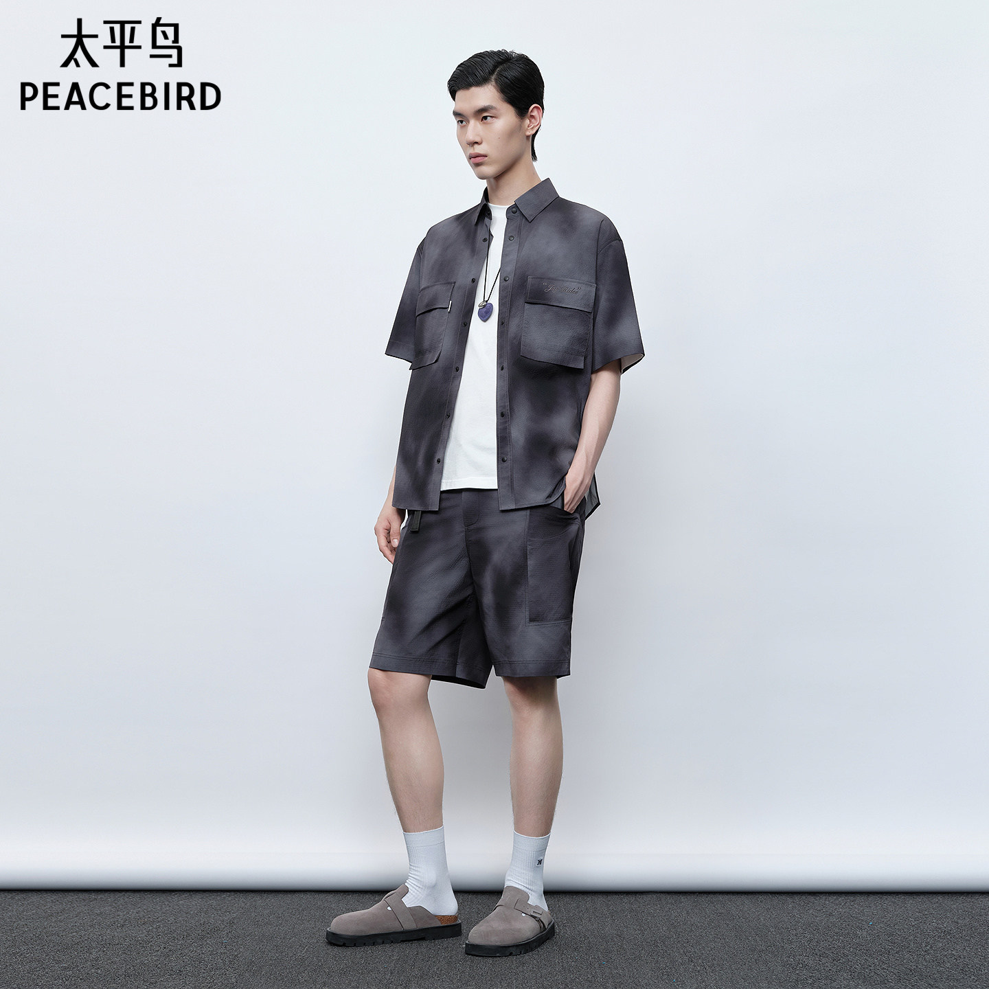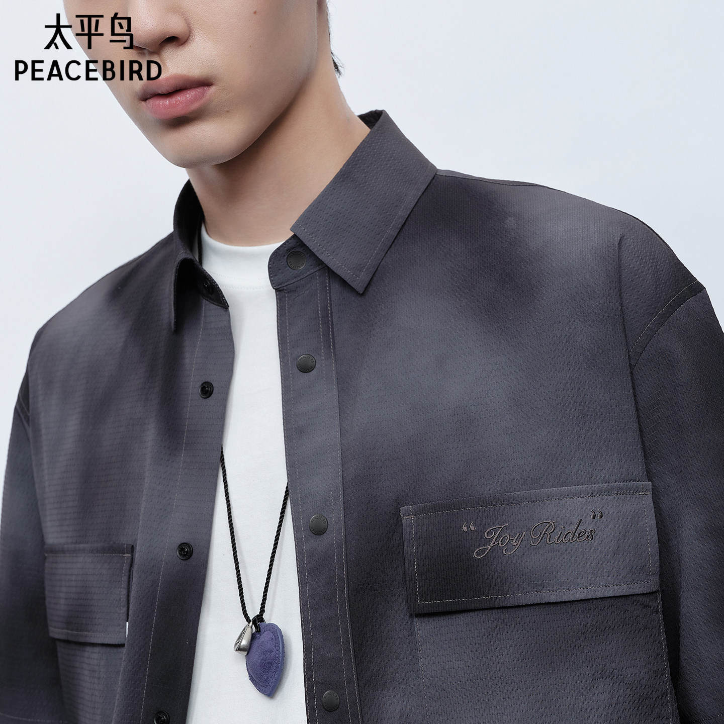 太平鸟男装 休闲衬衫男士时尚舒适潮流外穿式衬衫夏工装胸袋扎染