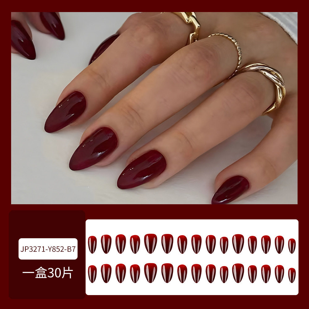 30片简约穿戴甲片 酒红色纯色甲片美甲 外贸优雅气质指甲贴片