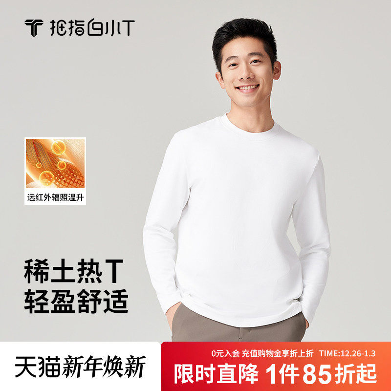 拇指白小T2025秋冬新款稀土发热保暖T长袖内搭体恤男圆领外穿T恤