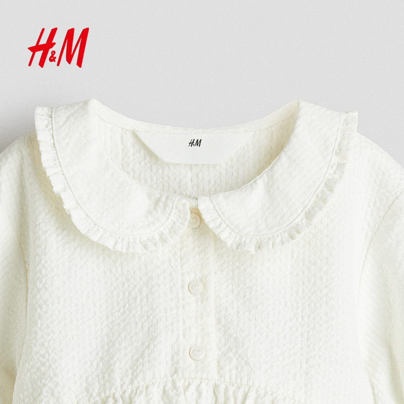 HM童装儿童女童衬衫2025年冬新款时尚褶边领裙式下摆上衣1292350