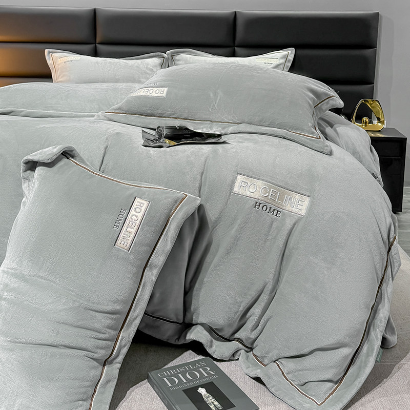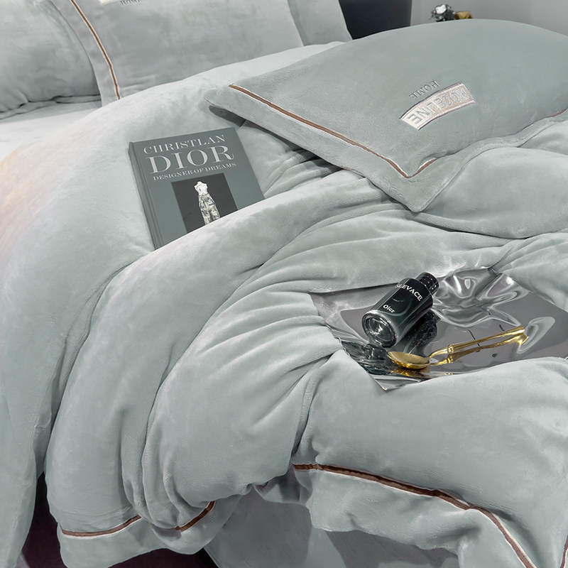 高端轻奢牛奶绒四件套加厚高克重被套床单冬季保暖珊瑚绒床上用品
