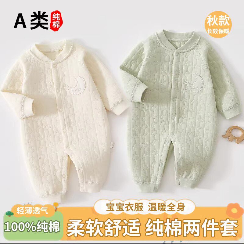 婴儿连体衣秋冬款三层夹棉保暖衣纯棉宝宝衣服新生儿贴身春秋母婴