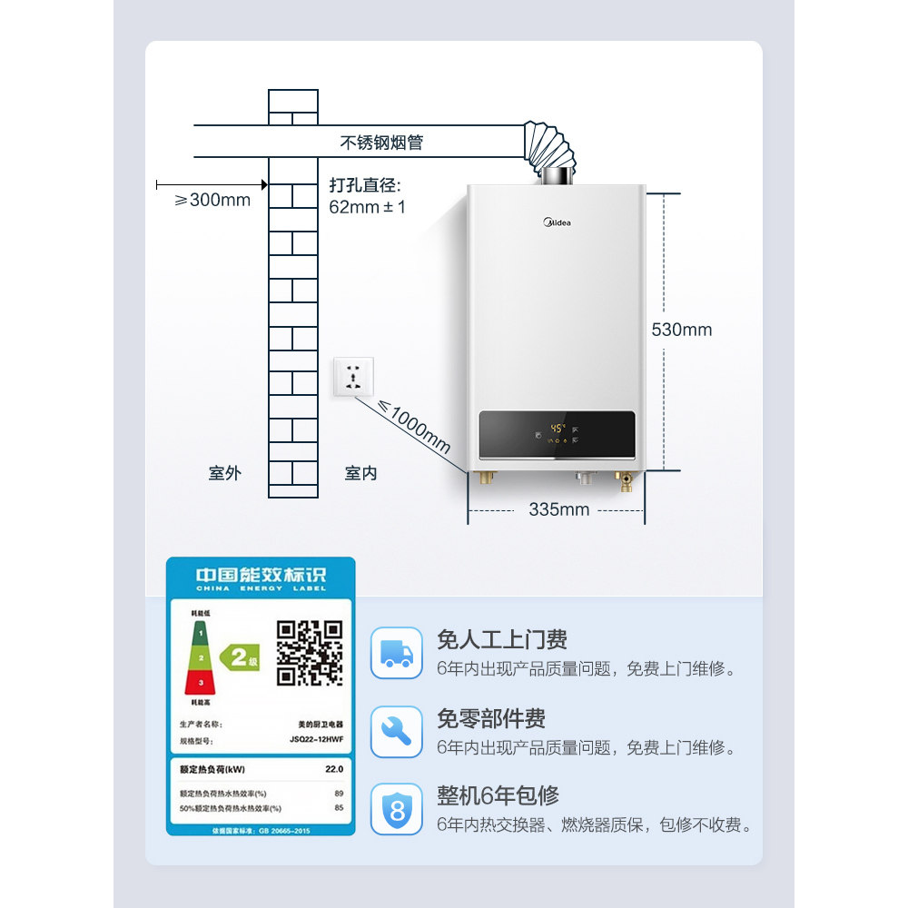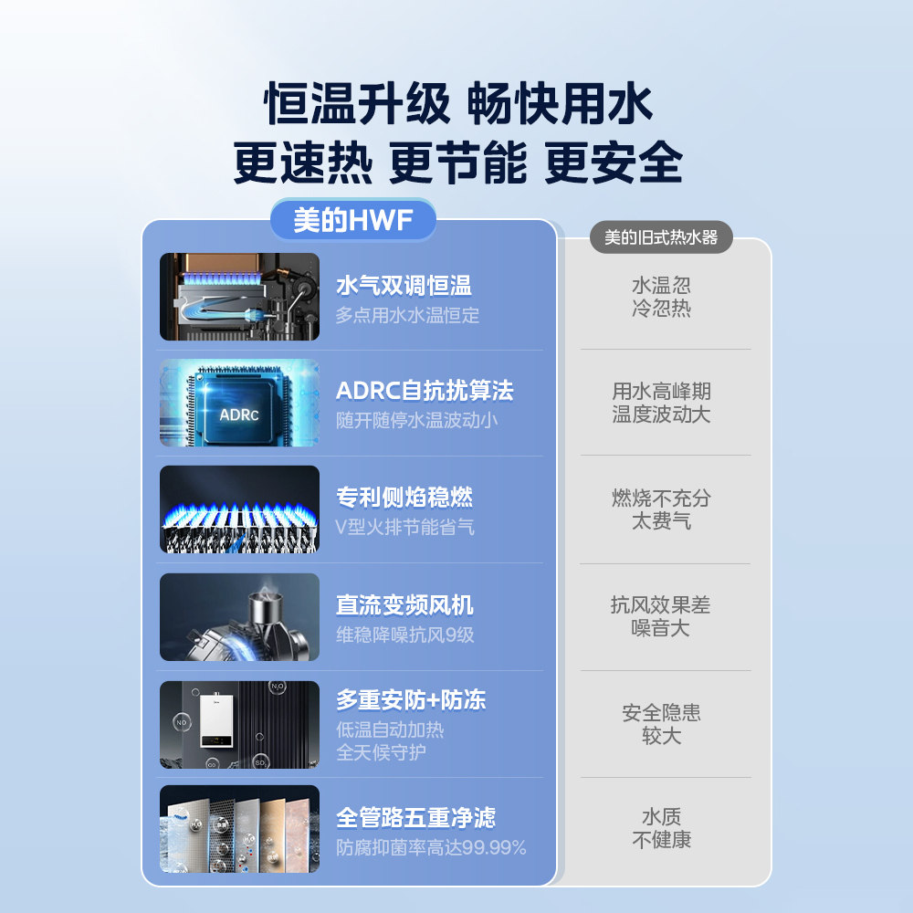 美的燃气热水器天然气家用13L洗澡恒温智节能强排12升14/16升HAW