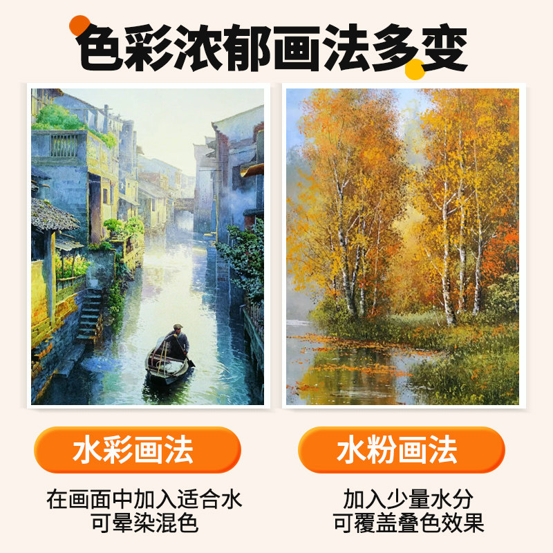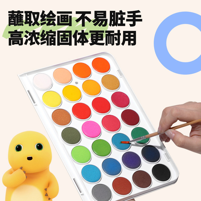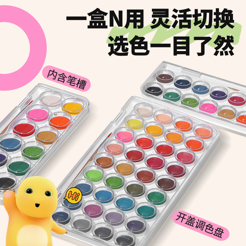 掌握奶龙固体粉饼水彩颜料套装36色初学者手绘画水彩粉饼24色儿童可水洗水彩画颜料透明套装美术用品