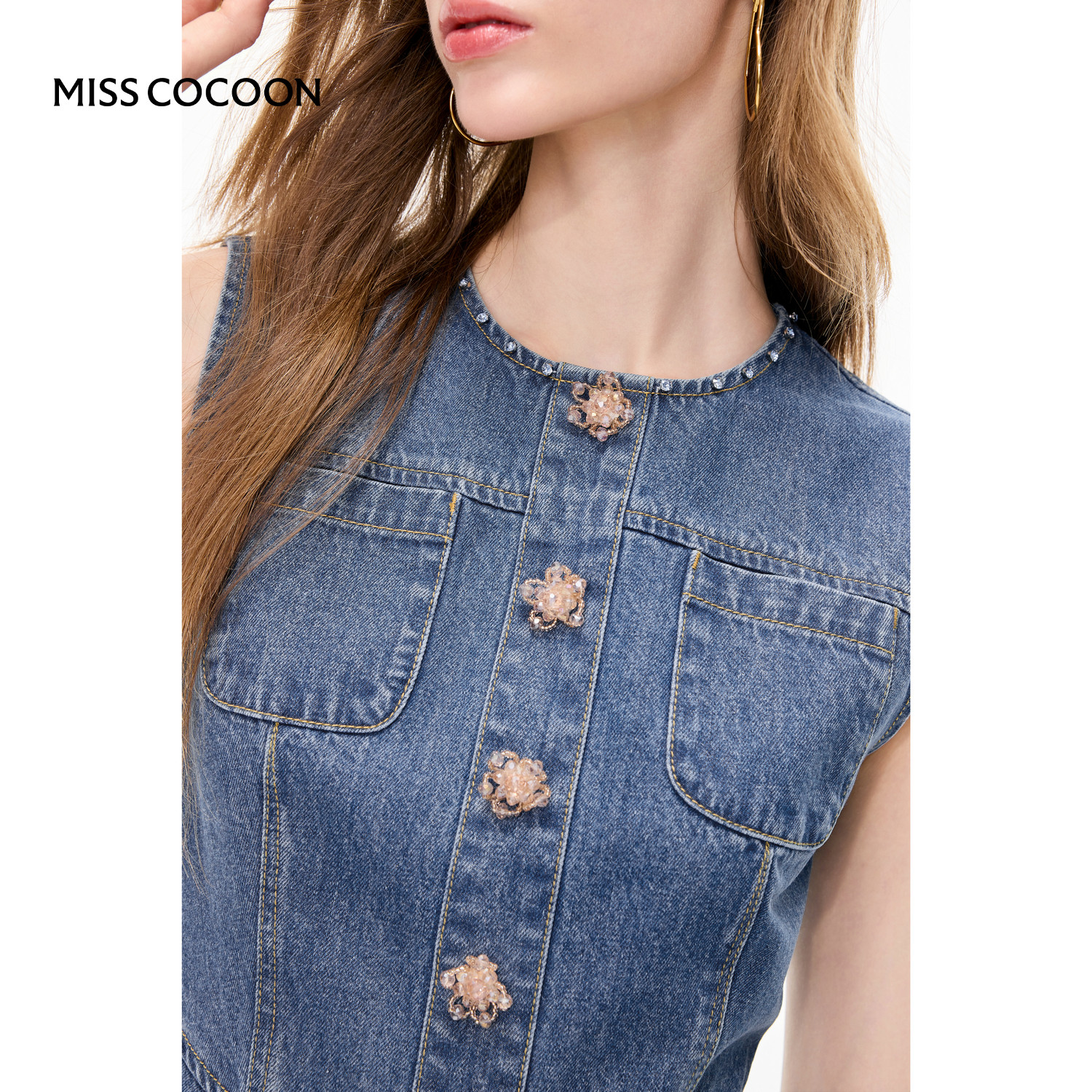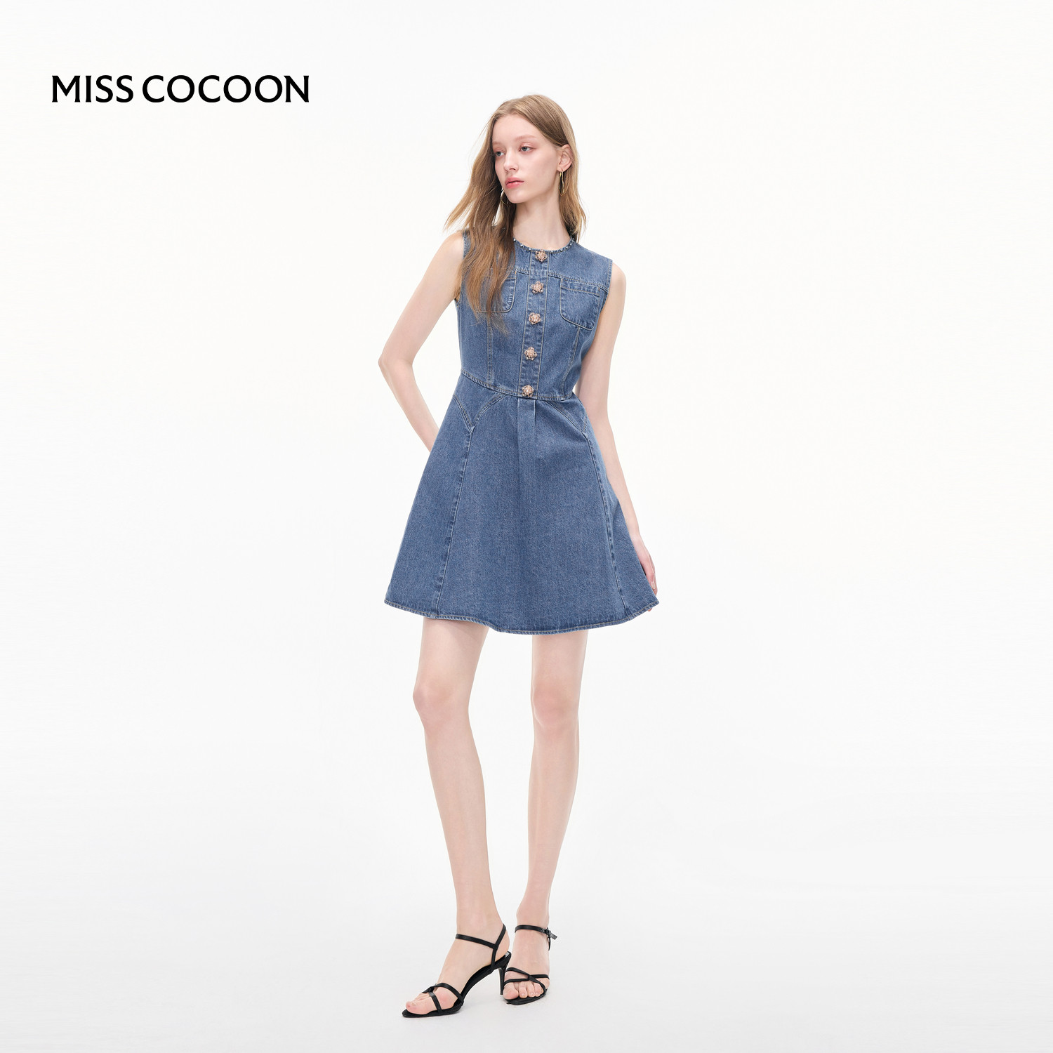 MISSCOCOON可可尼无袖背心裙女款2025秋季新款复古A字牛仔连衣裙
