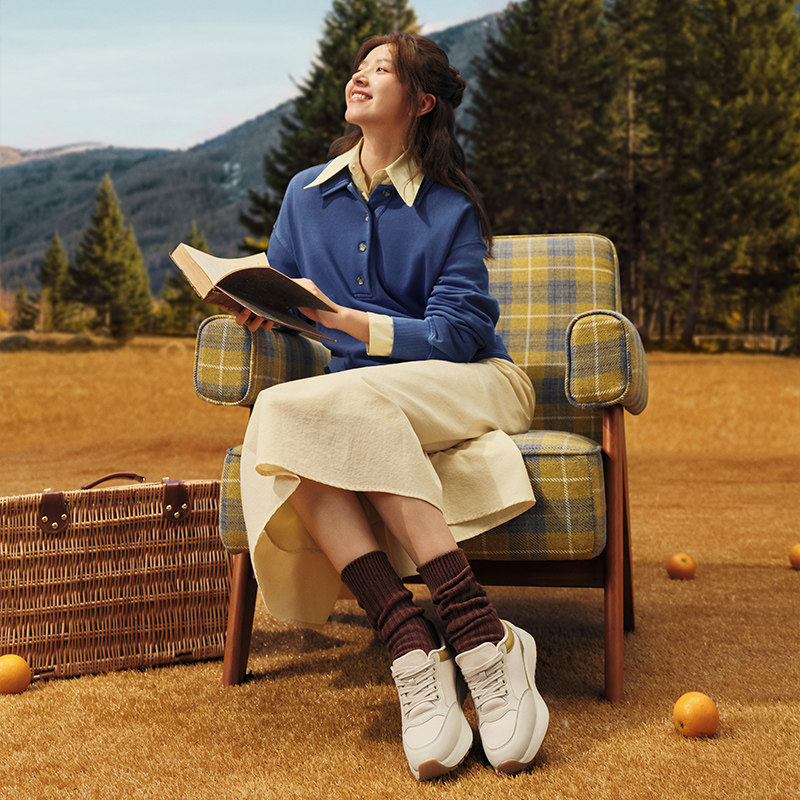 【迪丽热巴同款】骆驼银月户外复古老爹鞋女鞋秋季新款加绒运动鞋