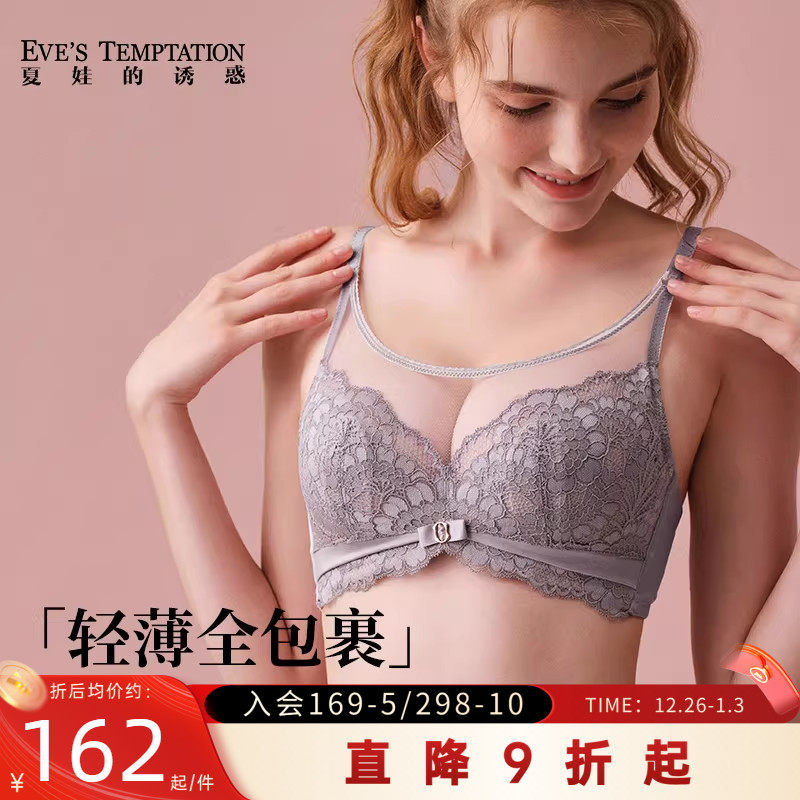 夏娃的诱惑内衣女大胸显小全罩杯薄杯蕾丝防下垂收副乳抹胸式文胸
