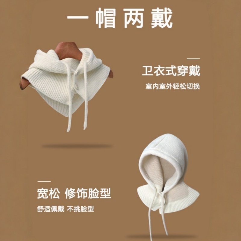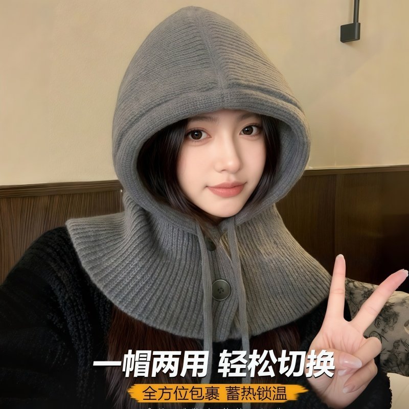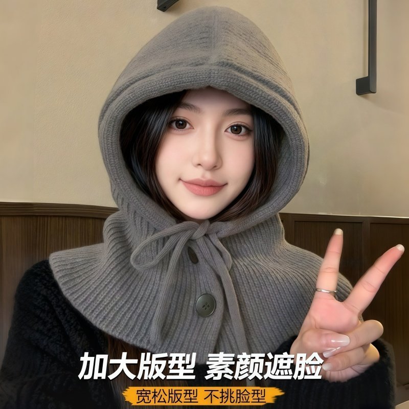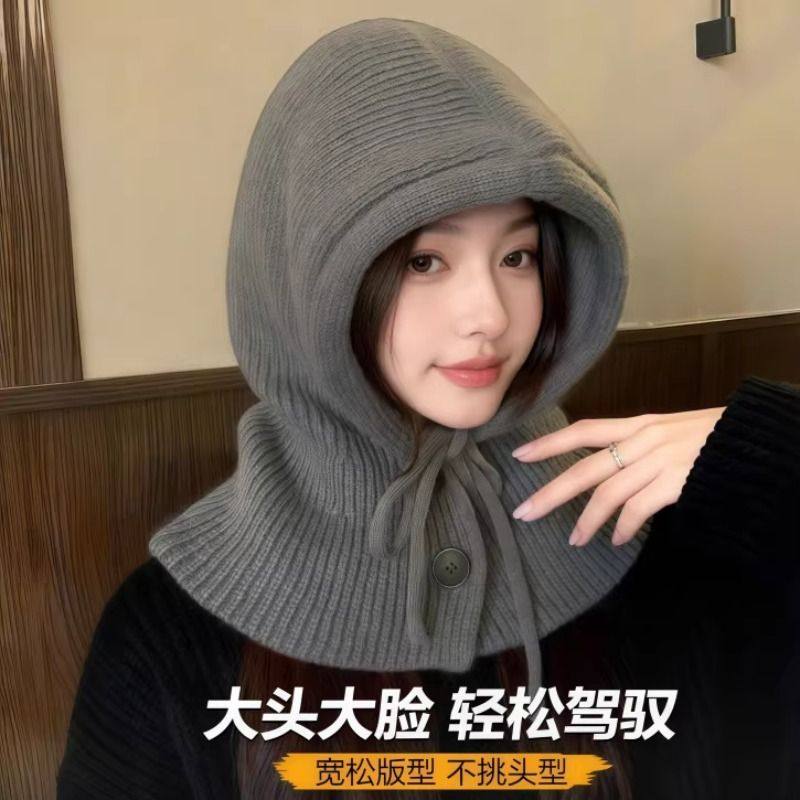 巴拉克拉法帽子女士冬保暖针织毛线帽大头围连帽围巾一体围脖护颈