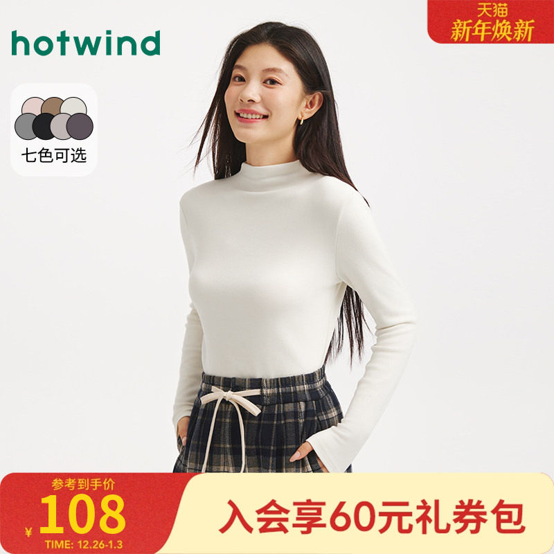 热风纯色长袖t恤2025年冬季新款女士绒感半高领亲肤软糯上衣内搭