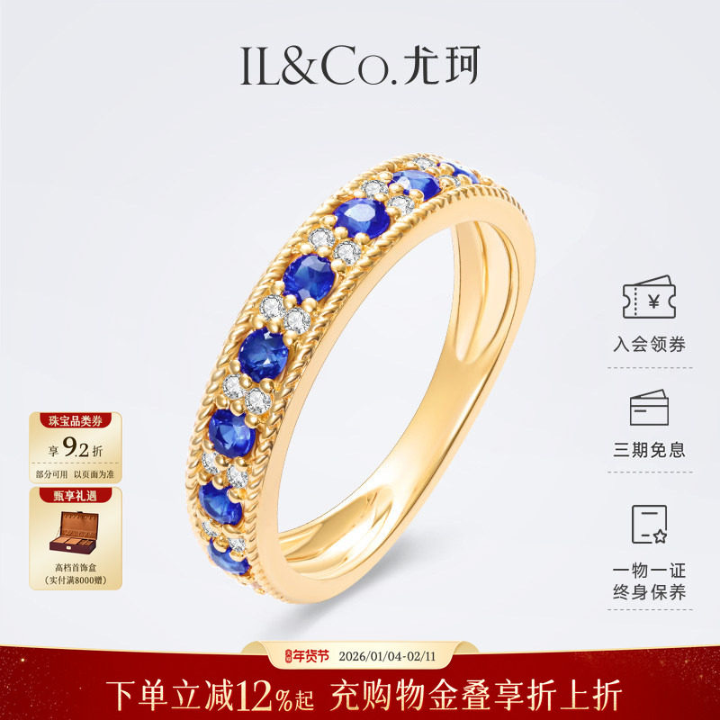 ILCO尤珂「巴黎旧梦」18K经典彩宝戒指镶钻天然红宝石蓝宝石排戒