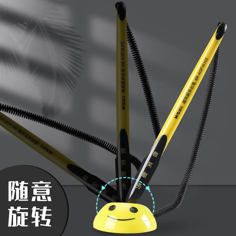 晨光台笔银行柜台笔固定签字笔桌面前台服务笔座带线圆珠笔带绳子办公商务中性笔碳素黑色吸在桌子上粘住的笔