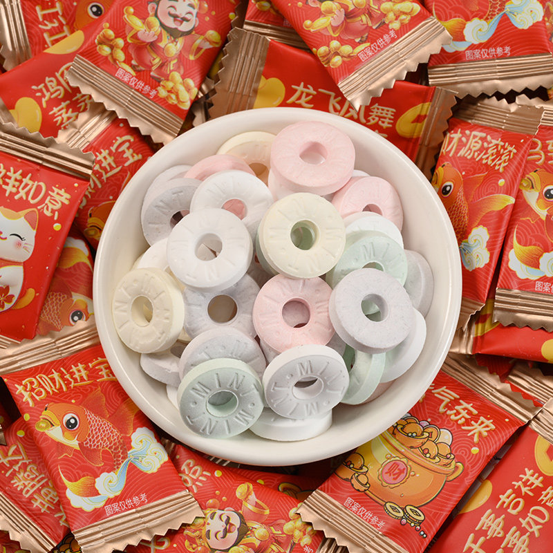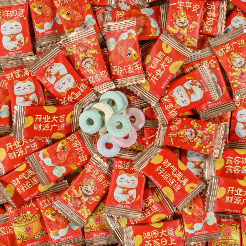 财气语录无糖薄荷糖清新口气恭喜发财财神爷圈圈糖商用招待糖糖果