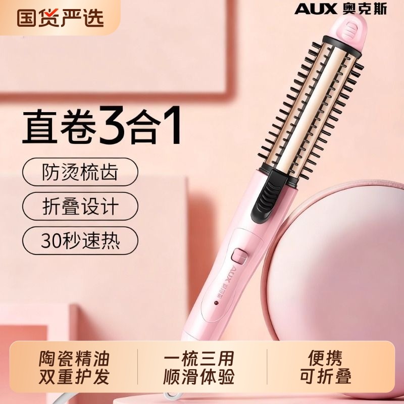AUX/奥克斯三合一卷发棒小型两用神器八字刘海蓬松夹便携持久造型
