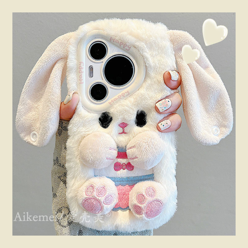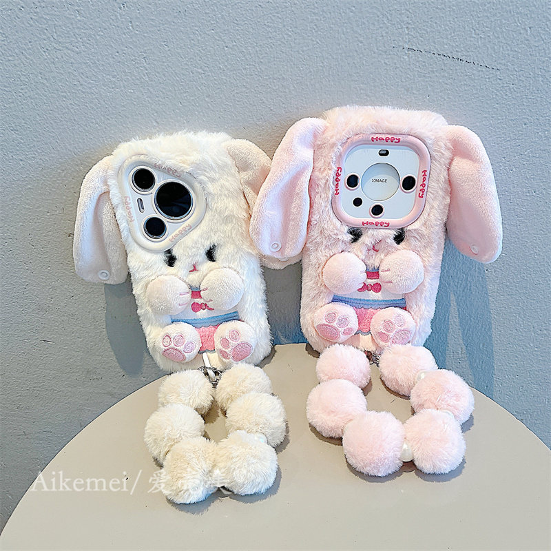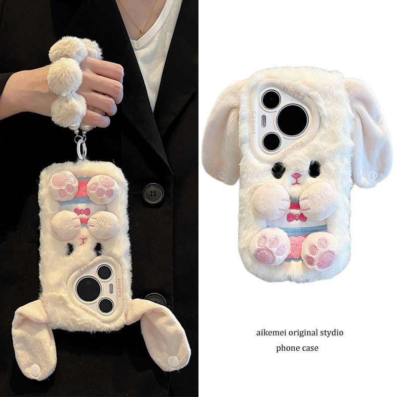 适用华为pura70pro+壳p60pro秋冬ins毛绒可爱卡通长耳朵兔子Pura70Ultra毛茸茸手环mate60全包软硅胶防摔