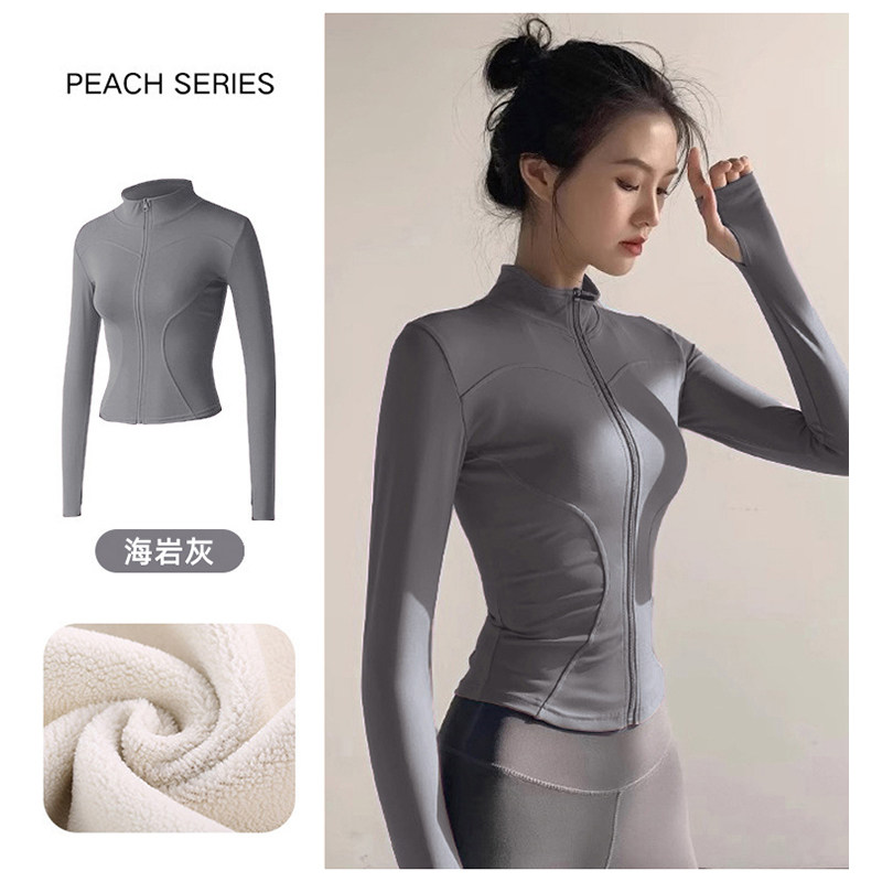 加绒加厚秋冬运动外套户外跑步健身上衣女训练休闲立领保暖瑜伽服
