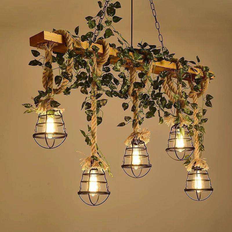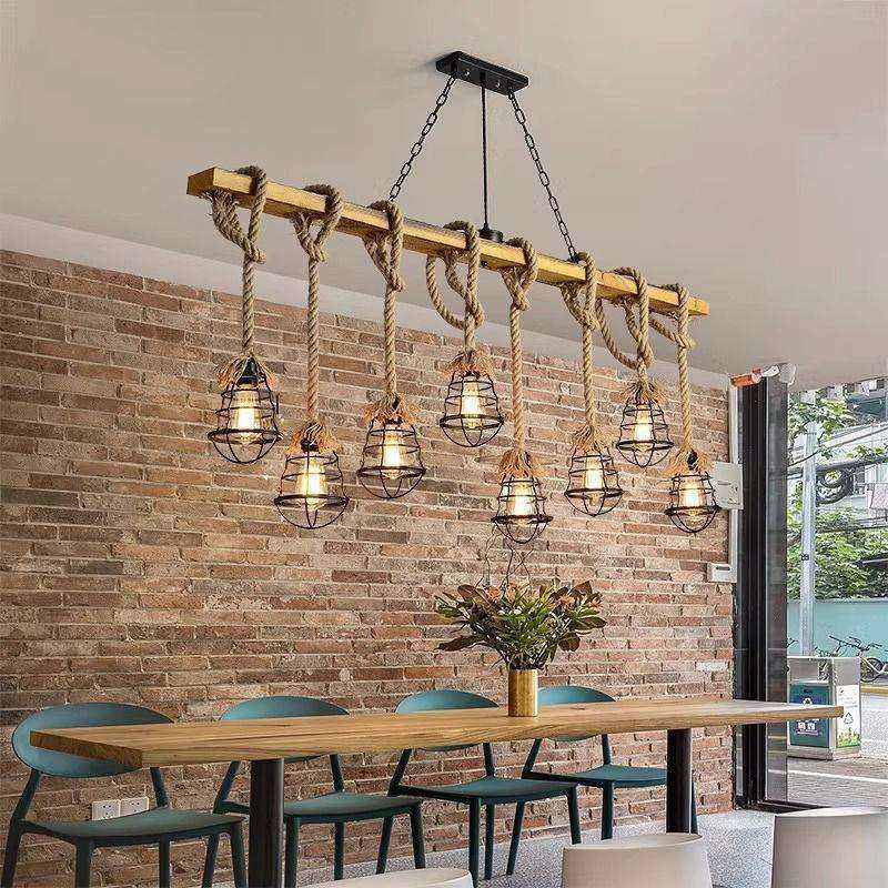 美式乡村餐厅木艺麻绳复古灯工业风复古烧烤店农庄收银台吧台吊灯