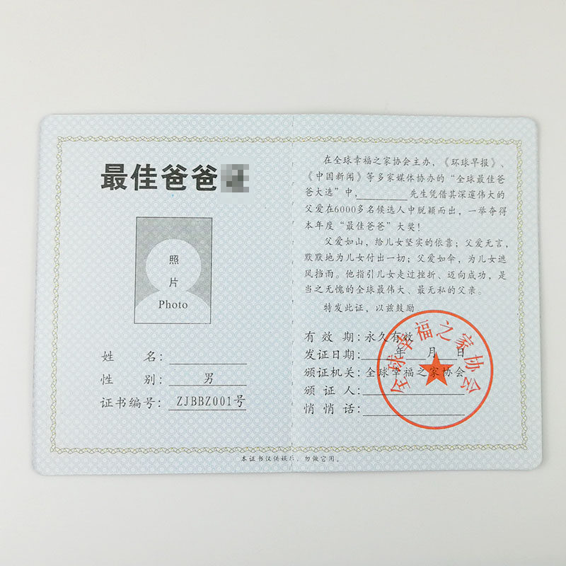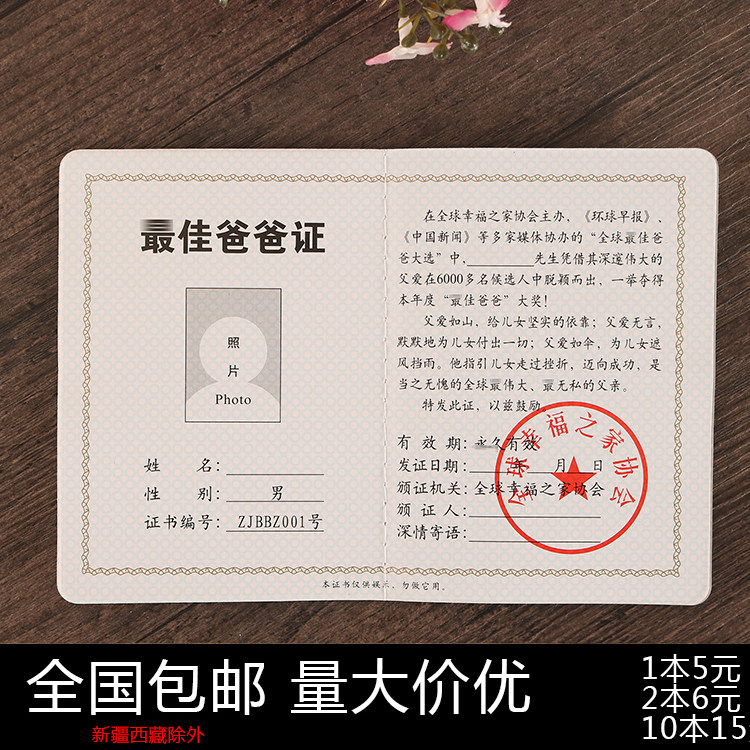 619父亲节证书一本包邮好爸爸证Z佳爸爸证Z帅妈妈证书创意小礼品