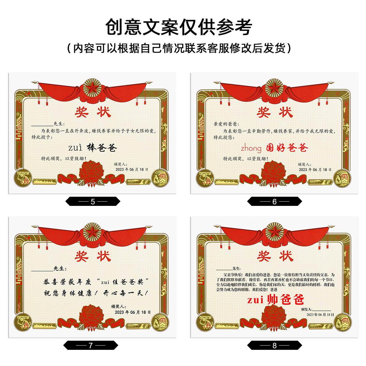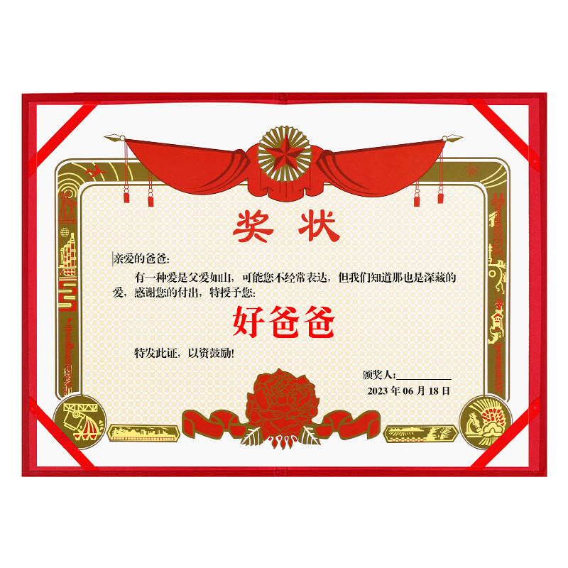 父亲节创意礼物定制送爸爸的礼物生日送老公礼物惊喜氛围奖状证书