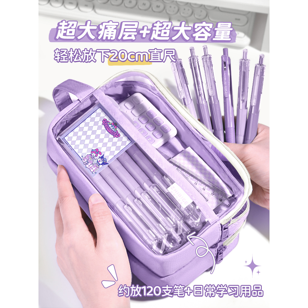 可爱ins风透明大容量笔袋女生2025超火文具盒女孩款小学生颜值学霸铅笔盒儿童奶小众文具袋隐藏超大耐脏开学