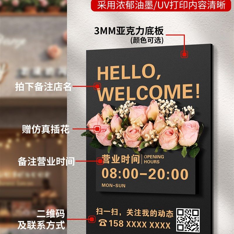 营业时间告示牌美容院氛围布置美甲店店门口广告招牌工作室门牌墙