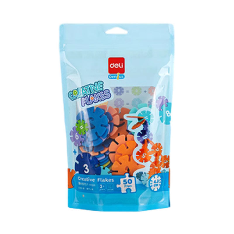 得力计数花片一年级儿童雪花片动脑拼装拼插积木幼儿园小学生数学学具计数片100片加减法教具男女孩益智玩具