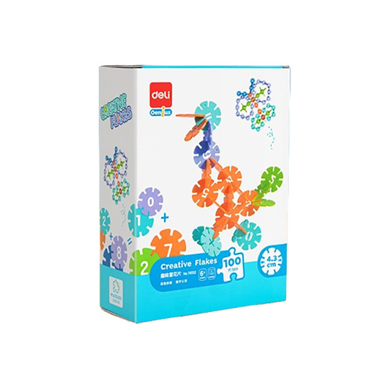 得力计数花片一年级儿童雪花片动脑拼装拼插积木幼儿园小学生数学学具计数片100片加减法教具男女孩益智玩具