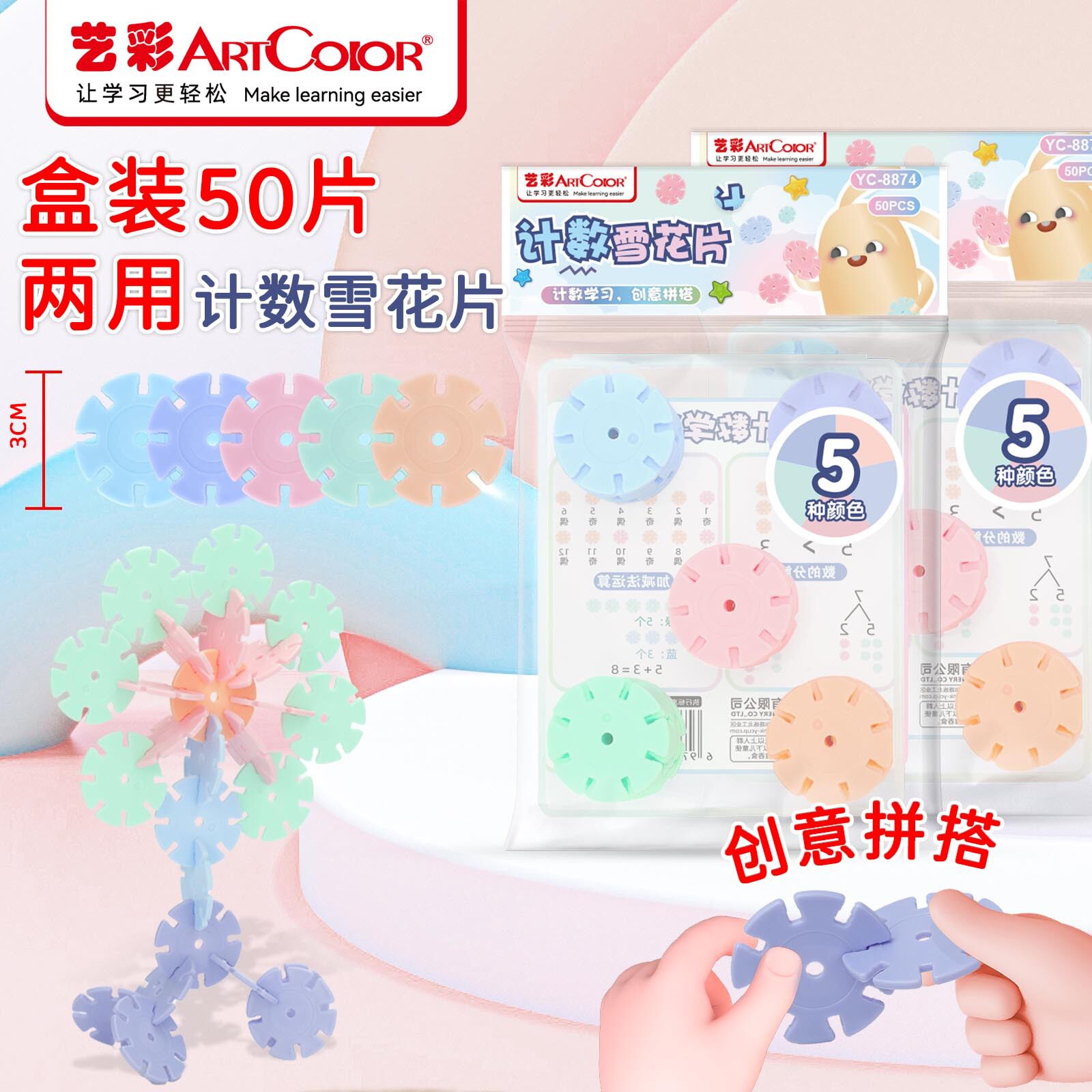 一年级数学雪花片教具彩色圆形计数片课本同步小学生专用100以内加减法运算数数计算学具拼搭动物图形苏教版