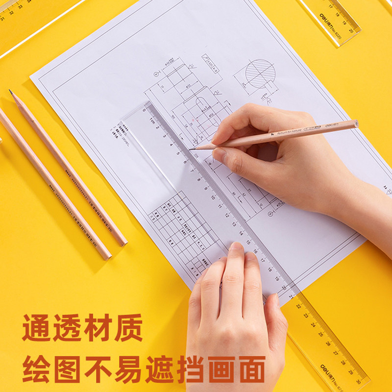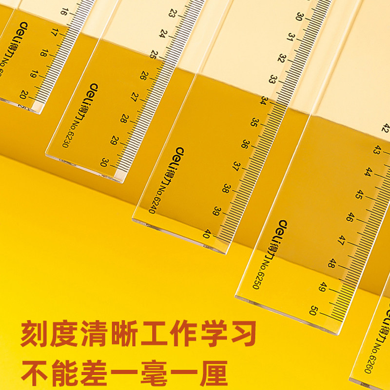 得力透明直尺小学生专用长直尺格尺多功能20/30/40/50/60cm塑料尺子绘图制图测量工具刻度尺可爱卡通一年级