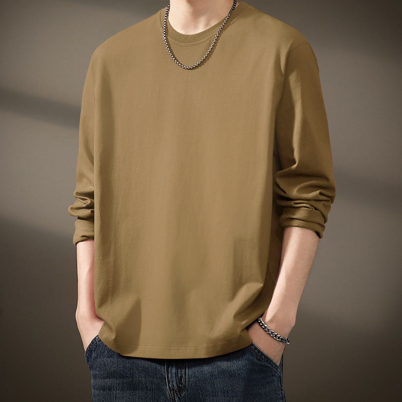 INS纯棉25韩国ins复古基础款纯色秋季打底衫内搭男女长袖T恤bf风