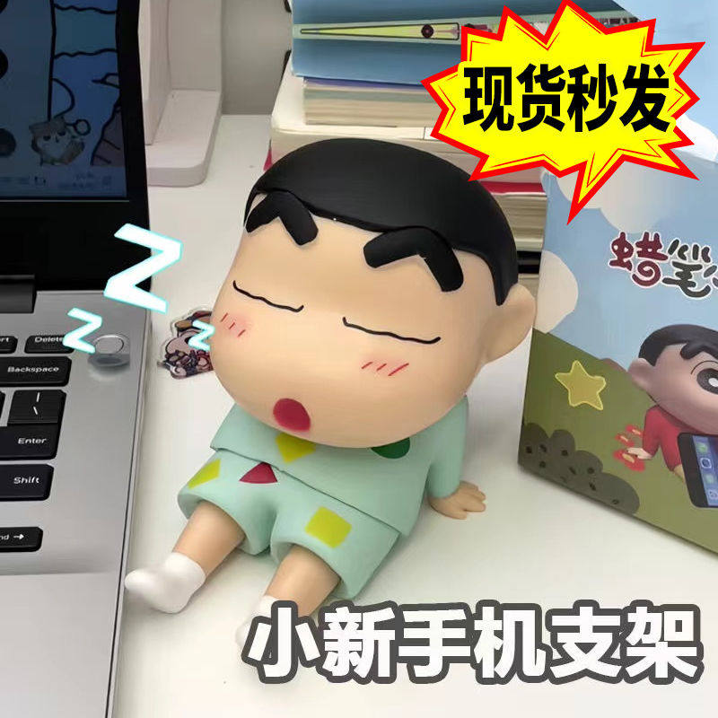 日漫蜡笔小新手机支架桌面手办睡袍小新手机平板支撑架野原新之助模型公仔桌面摆件