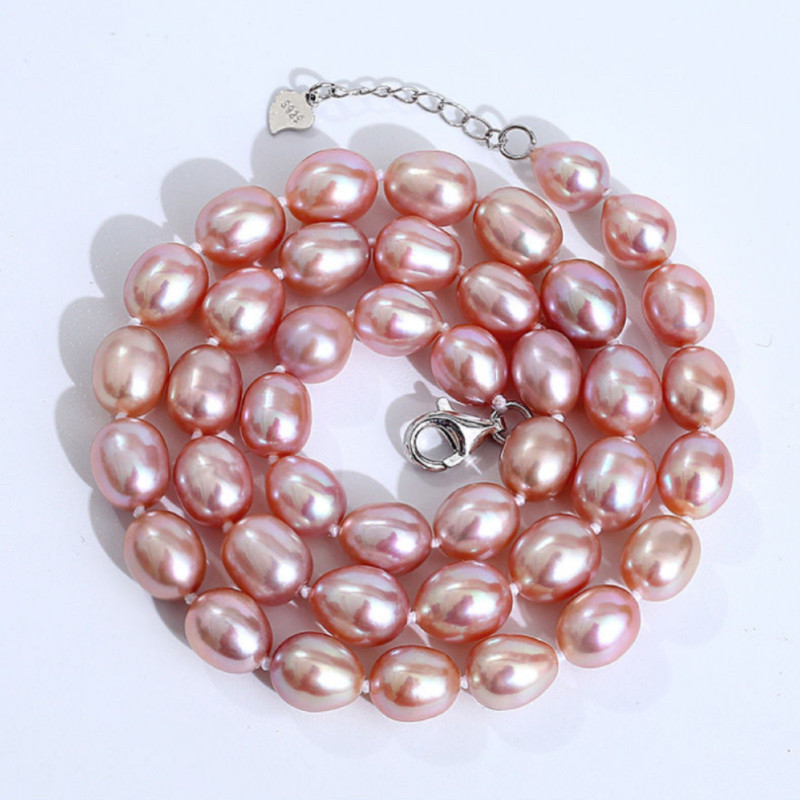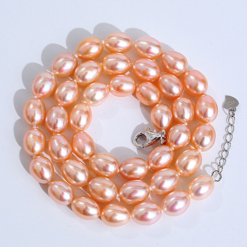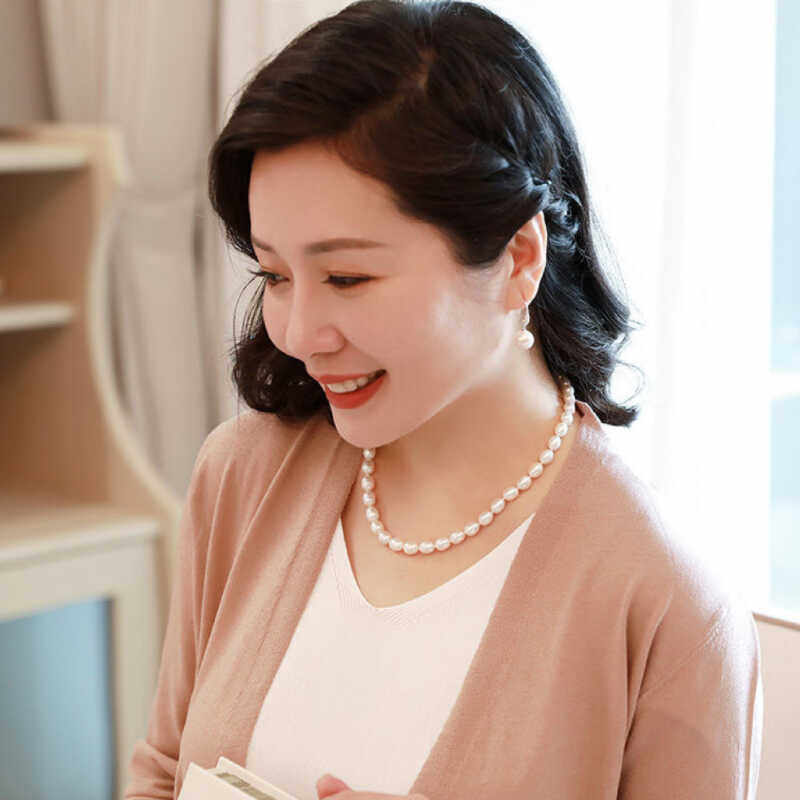 诸暨淡水珍珠项链米形强光全珠链小米珠颈链送女朋友妈妈婆婆紫色