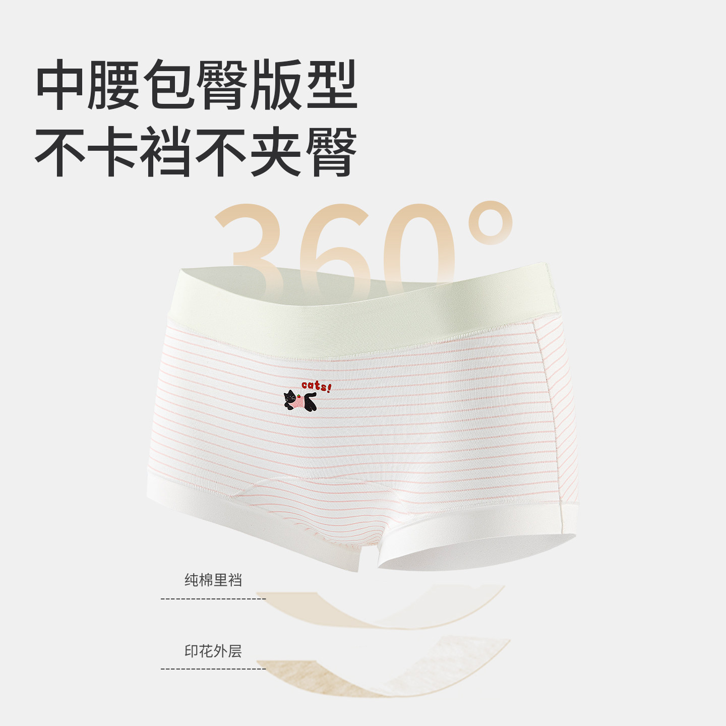蝶安芬棉内裤女2025新款中腰7A抑菌纯弹力无痕简约棉平角三角裤