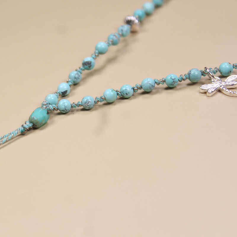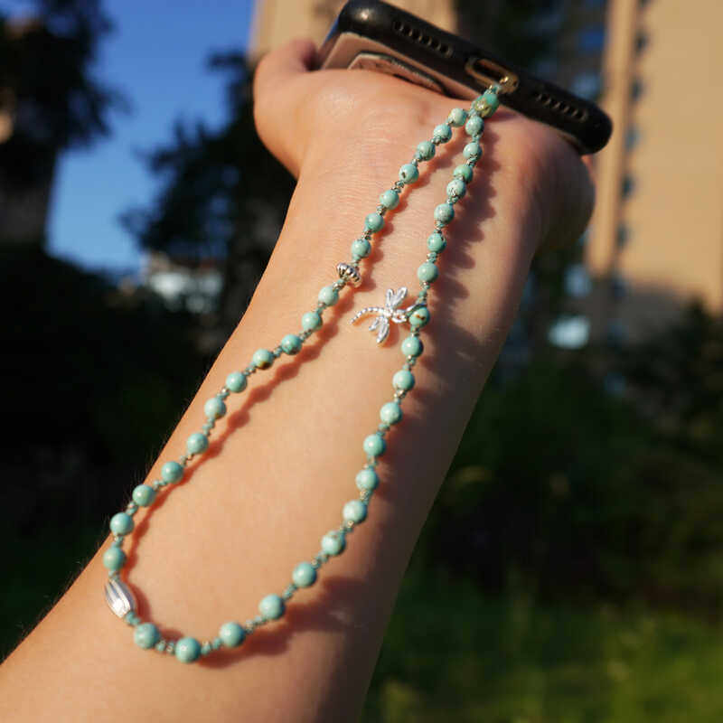 天然绿松石手机链女挂绳短手腕挂坠纯银吊坠手工编绳防摔玉石挂件