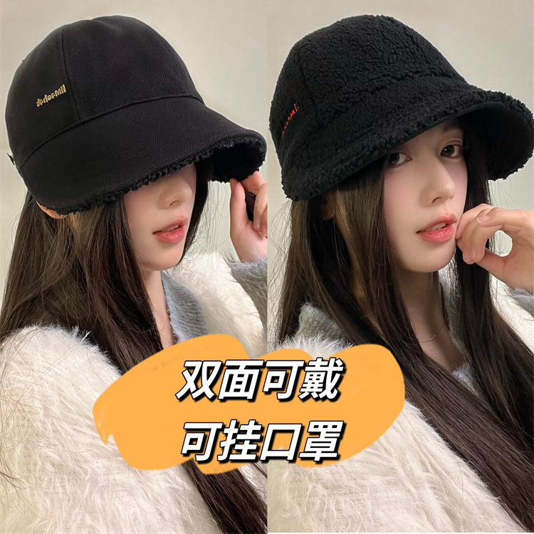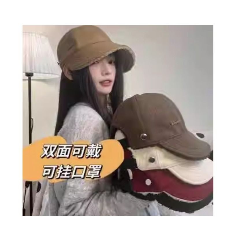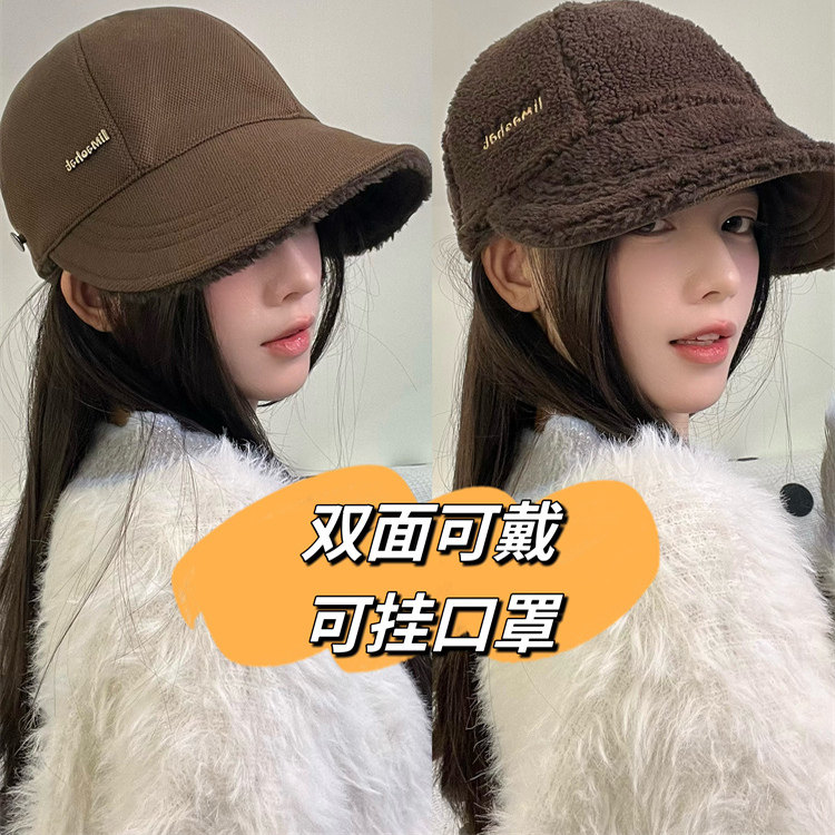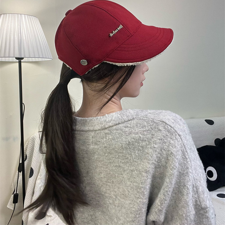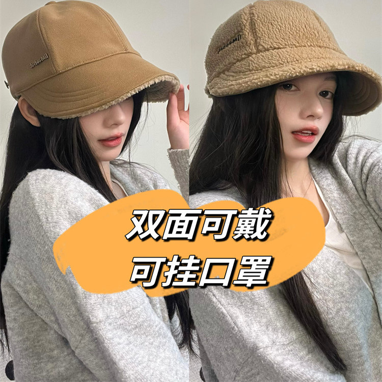 同款帽子女秋冬季渔夫帽加绒保暖大头围鸭舌帽棒球帽双面红色休闲