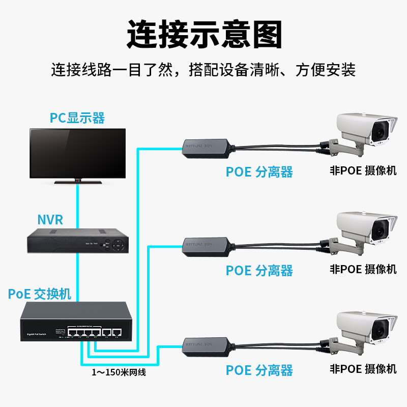 联果 POE分离器全兼容poe交换机供电模块 48V标准国标防水盒型隔离式国标12V 802.3af/at 30W