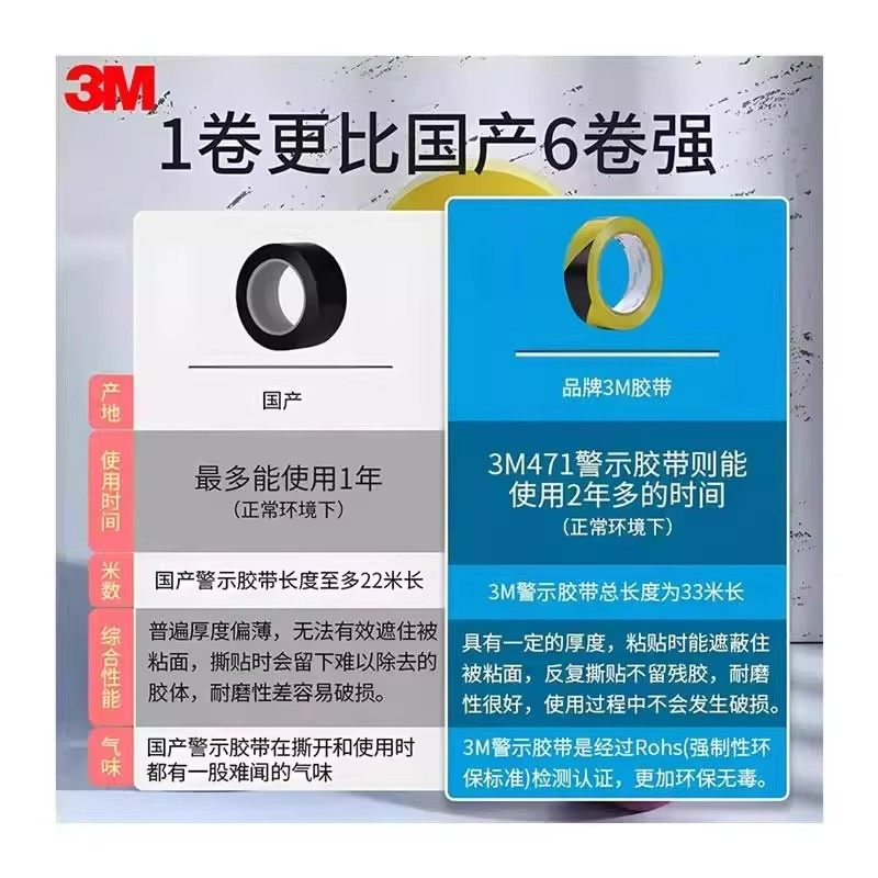 3m471黑黄警示胶带PVC防水耐磨地板专用斑马线隔离红蓝绿白标识胶