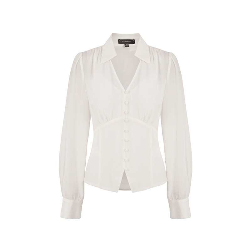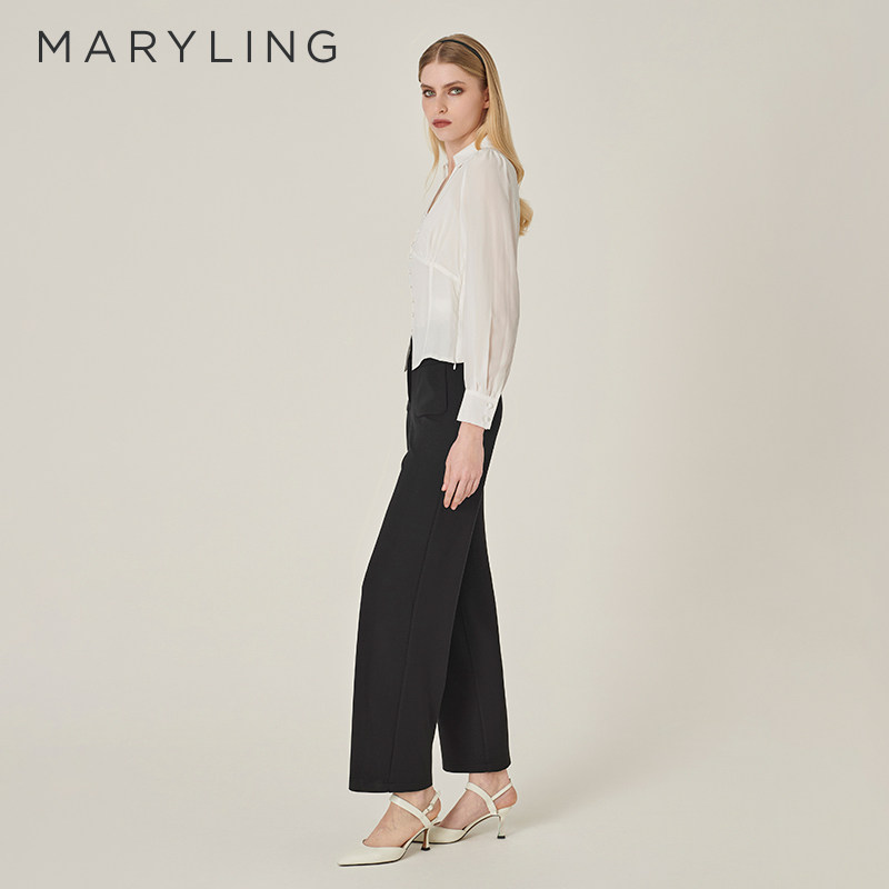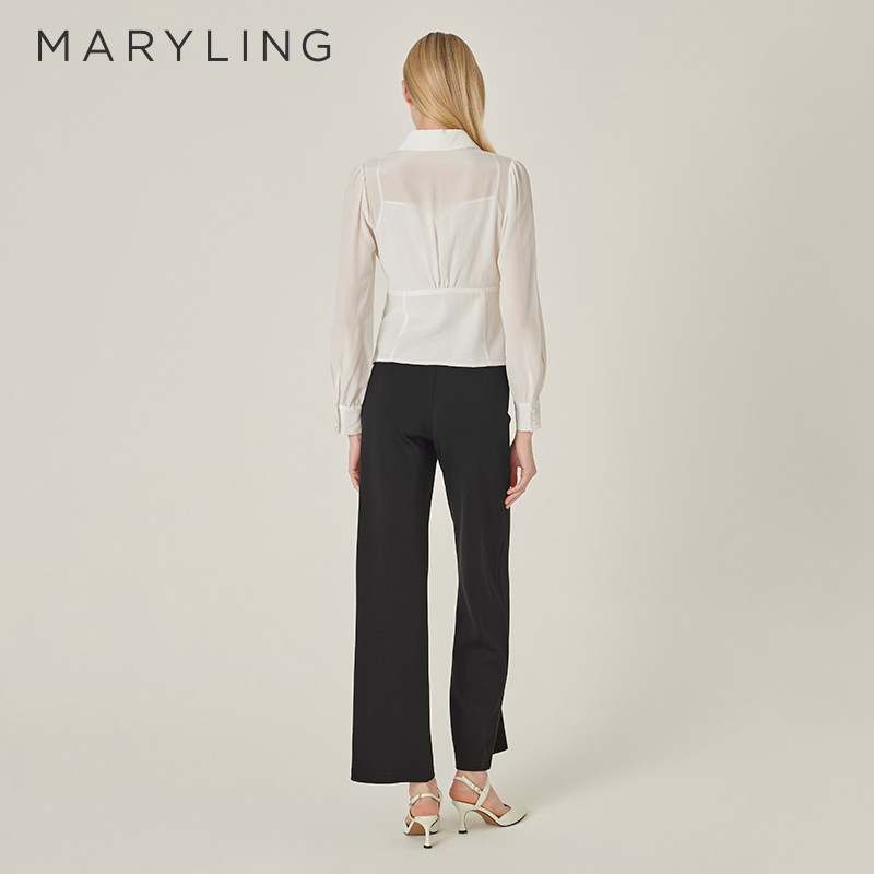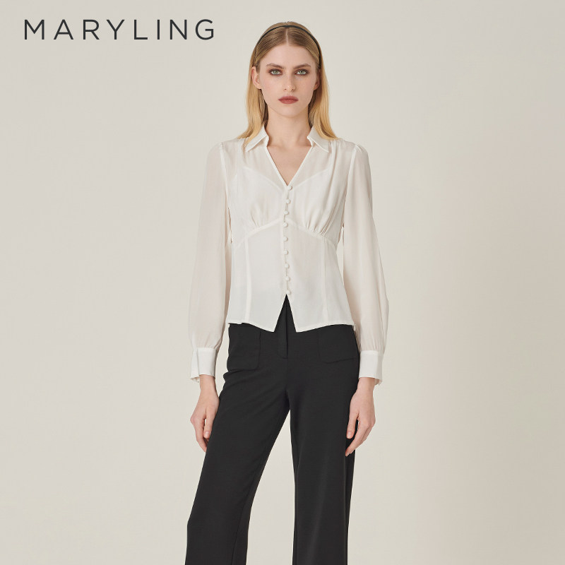 MARYLING玛俪琳24初秋新品V形衬衫领高腰开叉真丝上衣A1EFW20110