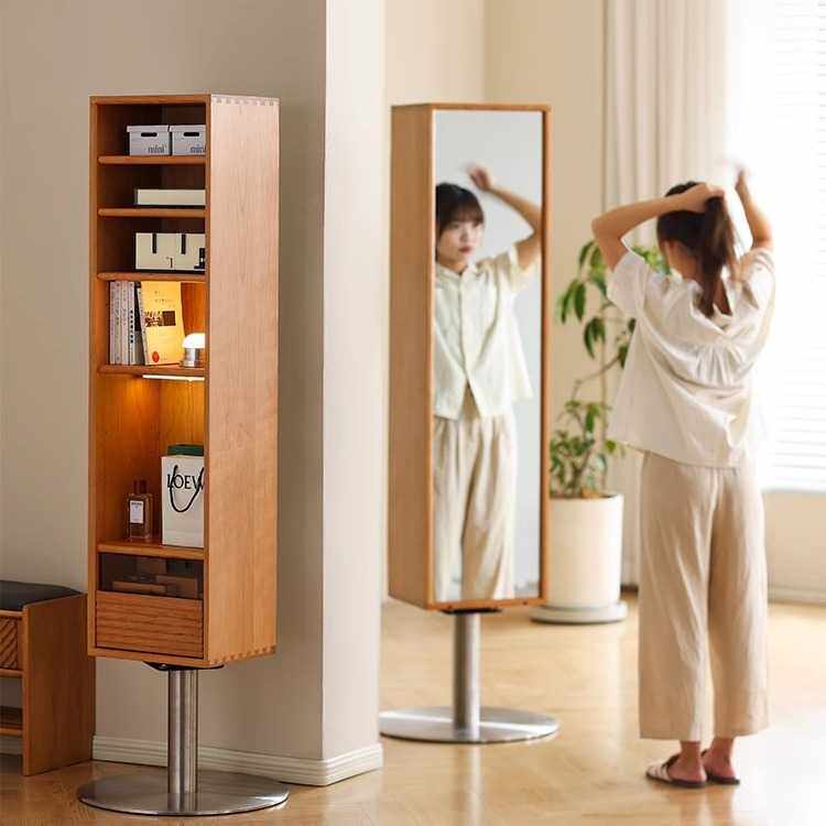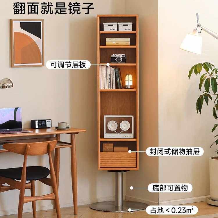 实木穿衣镜樱桃木可旋转储物柜家用小户型落地全身镜柜书柜置物架