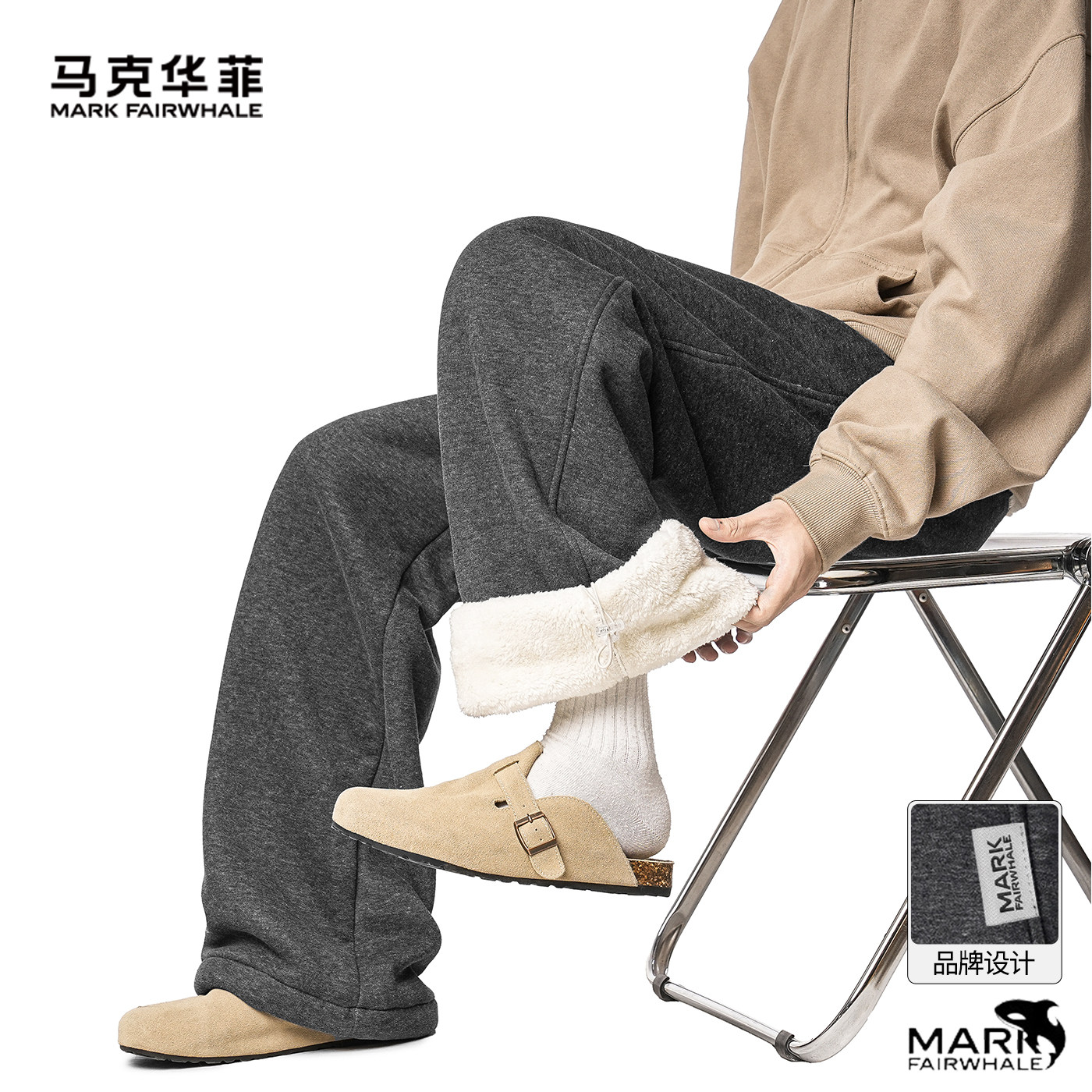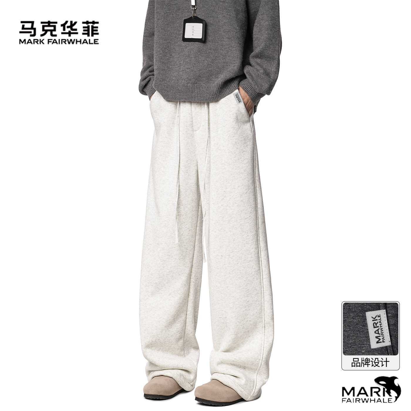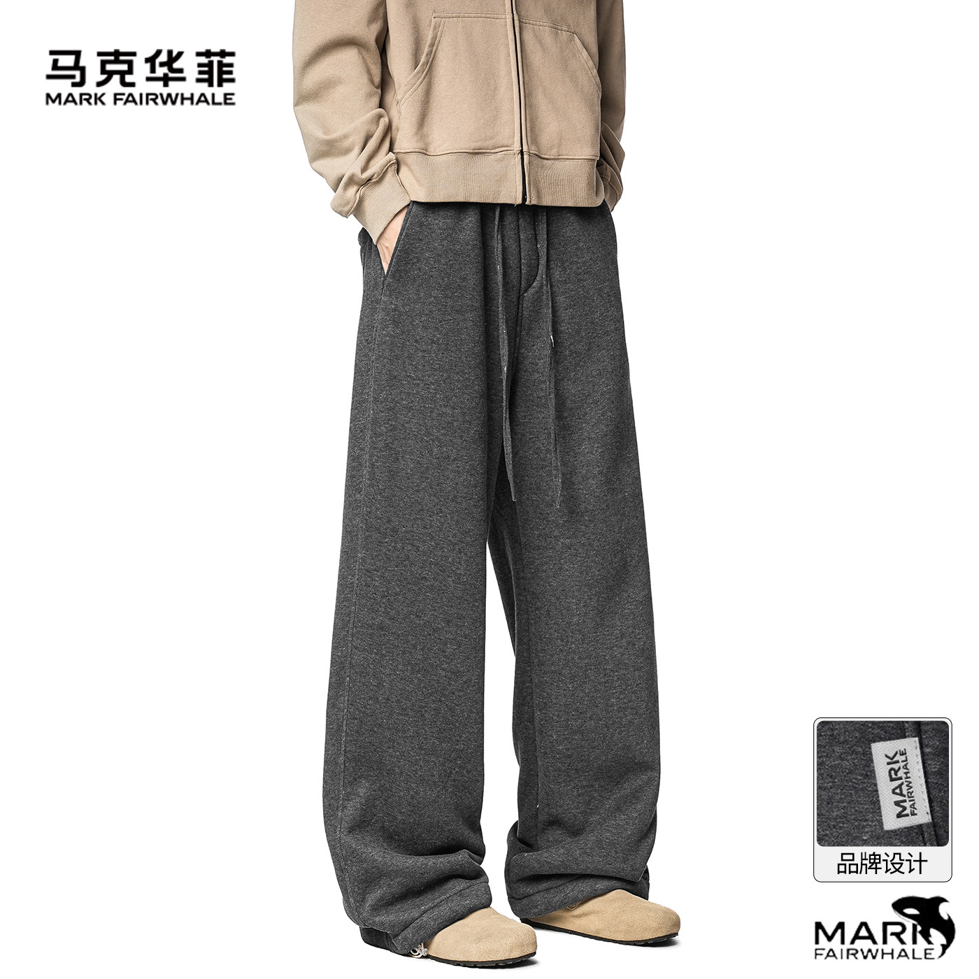马克华菲2026春季新款简约运动风加绒男士宽松直筒阔腿裤垂感长裤