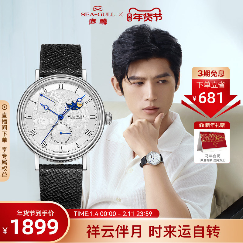 【情人节礼物】海鸥表月相手表男款全自动机械表时尚个性腕表男表