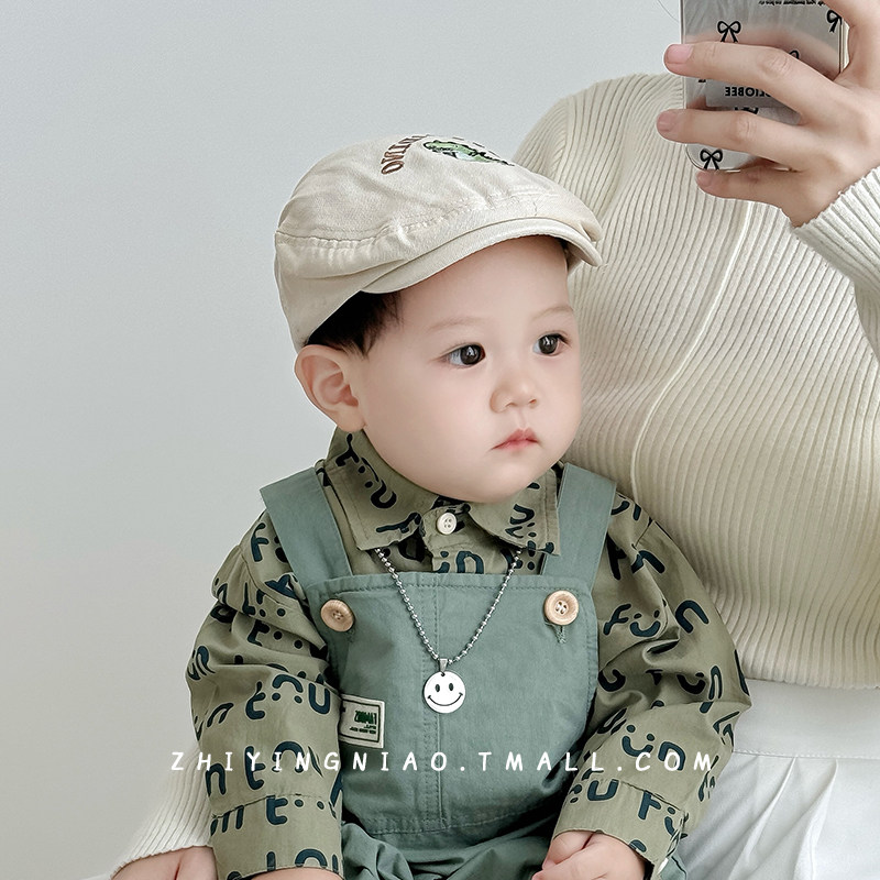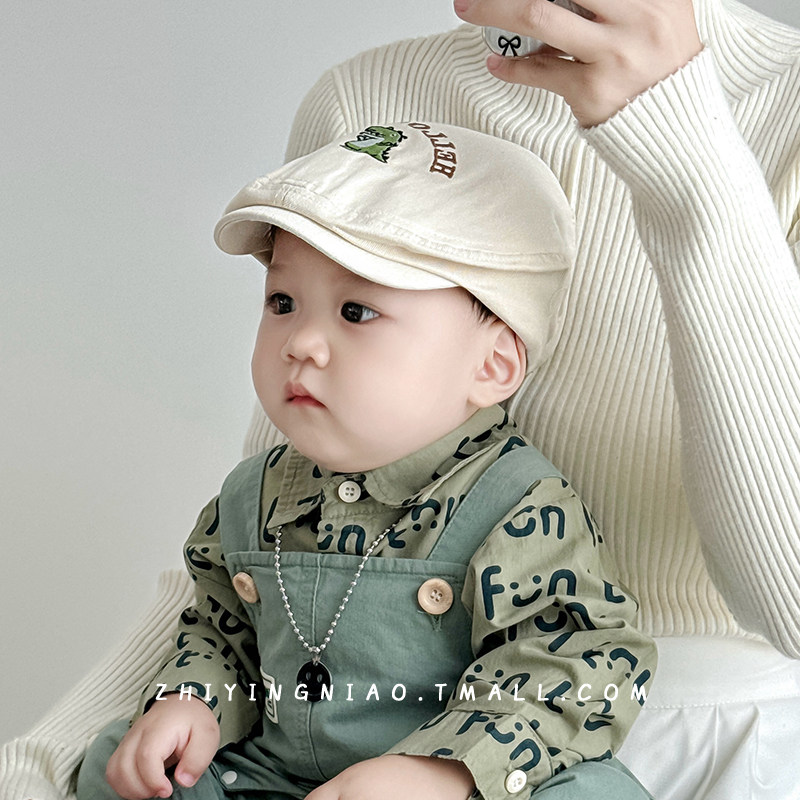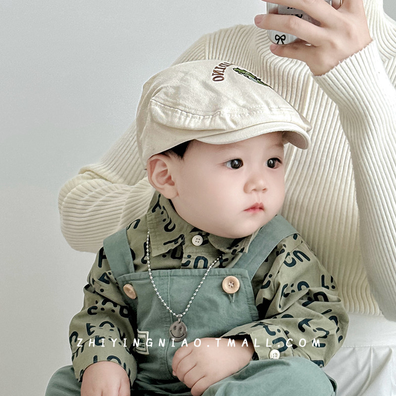 宝宝帽子春秋季前进帽可爱韩版男童画家帽秋冬款儿童贝雷帽潮黑色