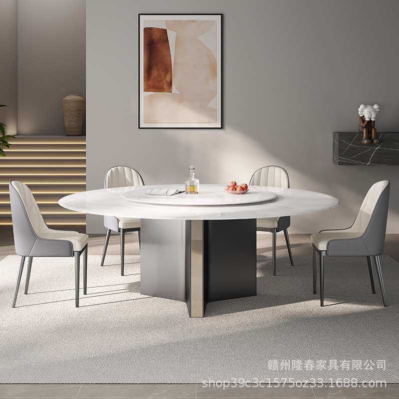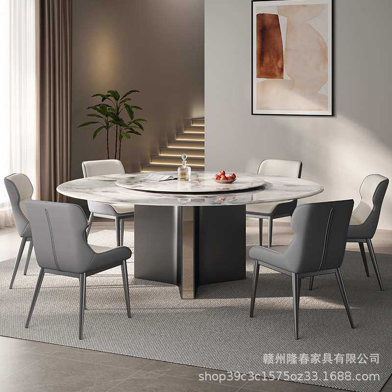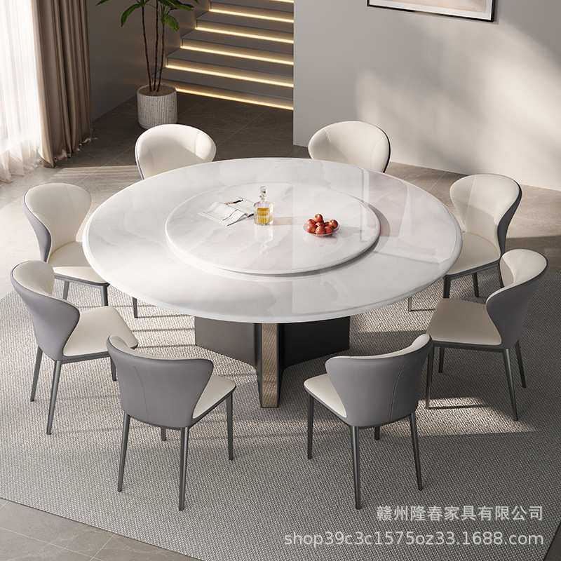 轻奢超晶石餐桌椅组合家用小户型高级微晶石家用带转盘圆桌