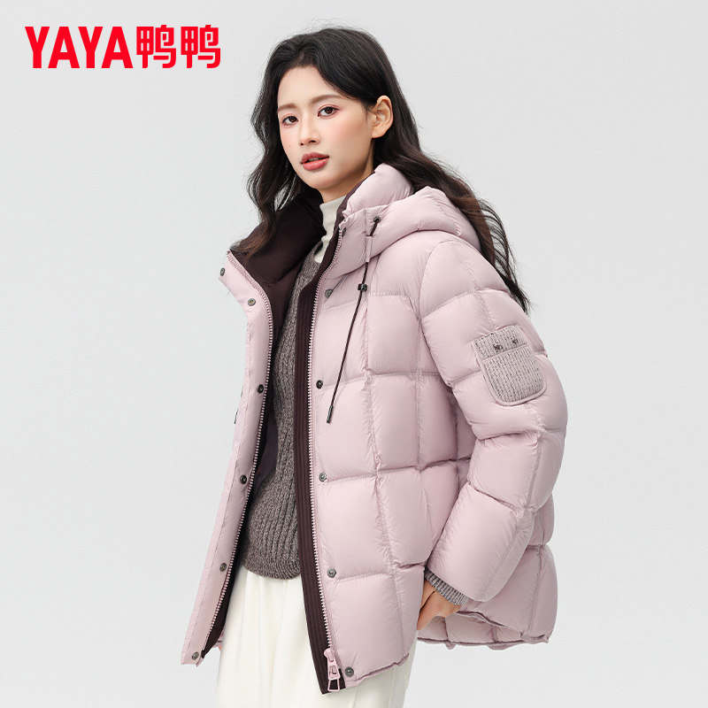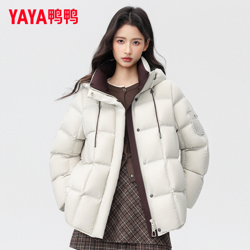 鸭鸭2025秋冬新款立领短款羽绒服小个子女冬多巴胺连帽可拆帽外套