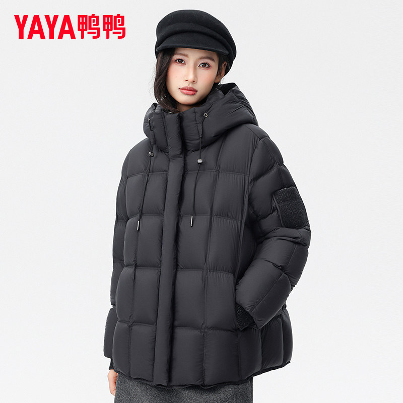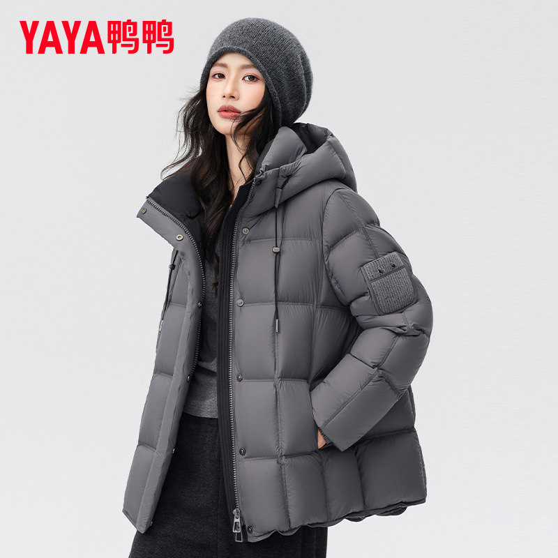 鸭鸭羽绒服女中长款2025年冬季新品时尚连帽加厚保暖泡芙鸭绒外套