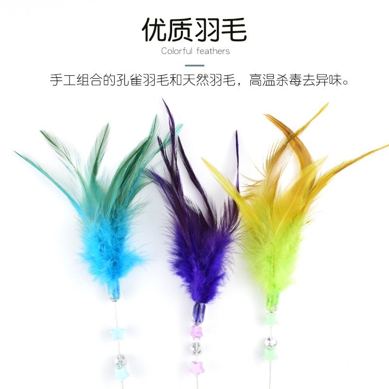 长杆逗猫棒猫咪玩具耐咬羽毛带铃铛小猫用品逗猫神器宠物弹簧蓝色