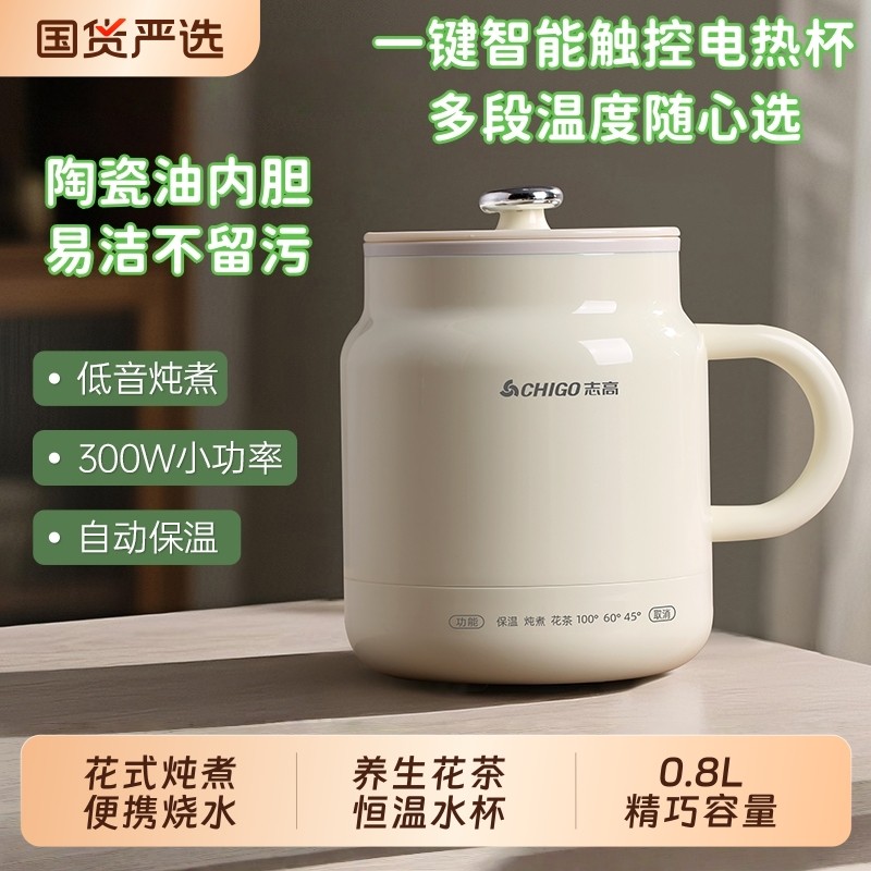 志高电热杯炖煮一体养生烧水壶一人小型热牛奶神器保温陶瓷多功能