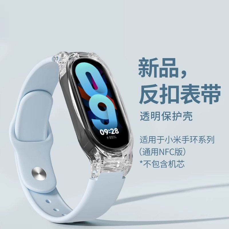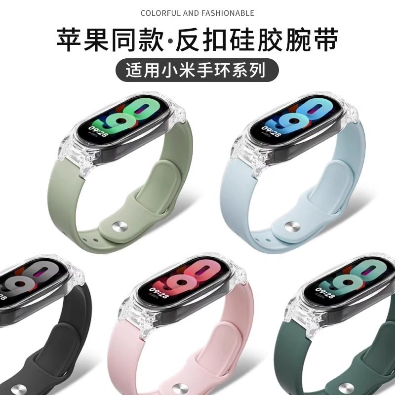 适用小米手环10/9表带硅胶腕带透明连接框女生夏天男士运动智能手表带Xiaomi8透气NFC版替换手表链紫色陶瓷