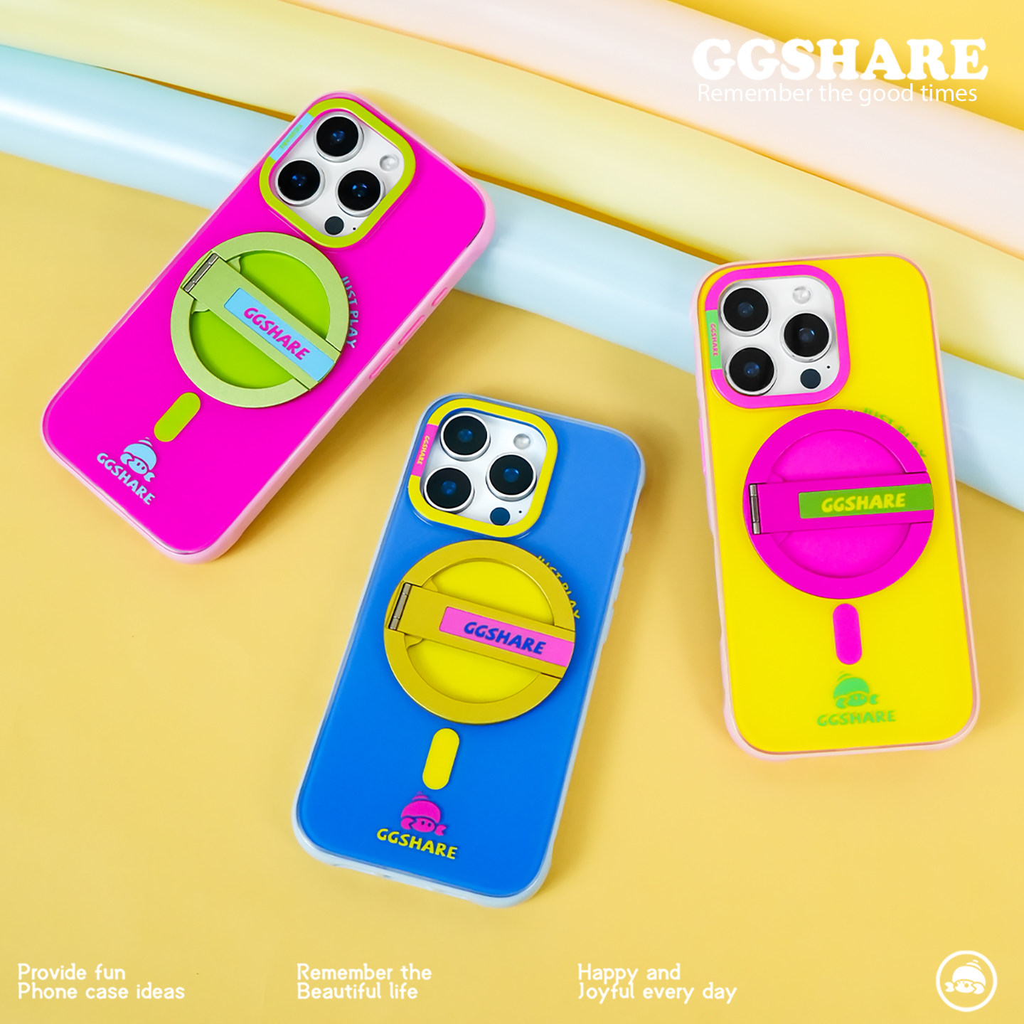 寄居蟹原创艺术色块iphone17磁吸手机壳带支架16适用苹果15promax新款14折叠手机支架超手腕绳小众男女情侣款